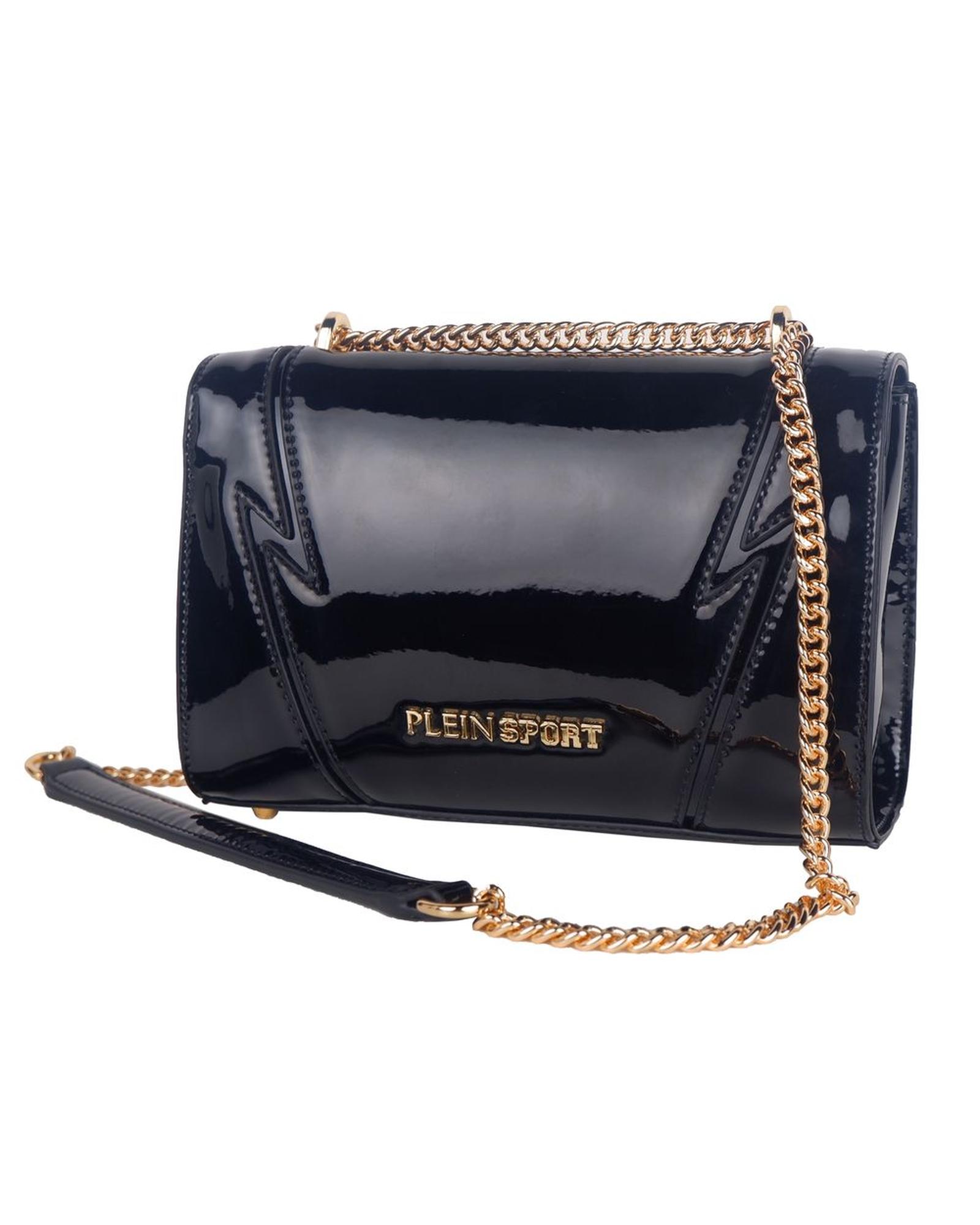 Logo Chain Shoulder Bag with Magnetic Opening and Patent Leather Effect One Size Women