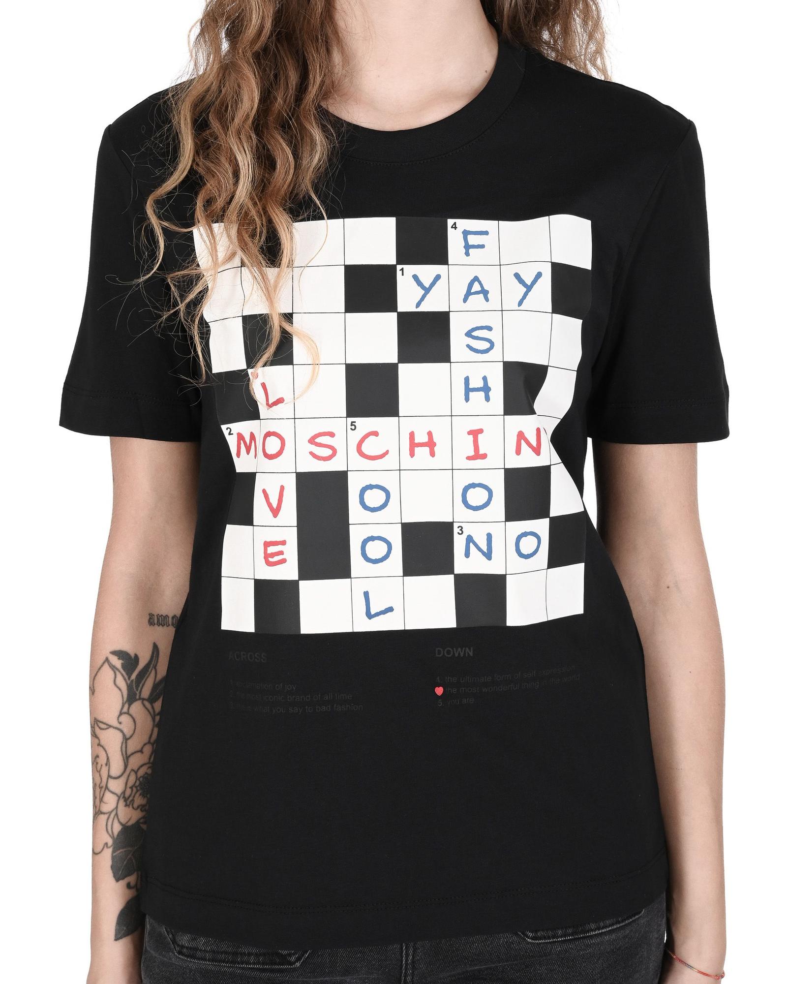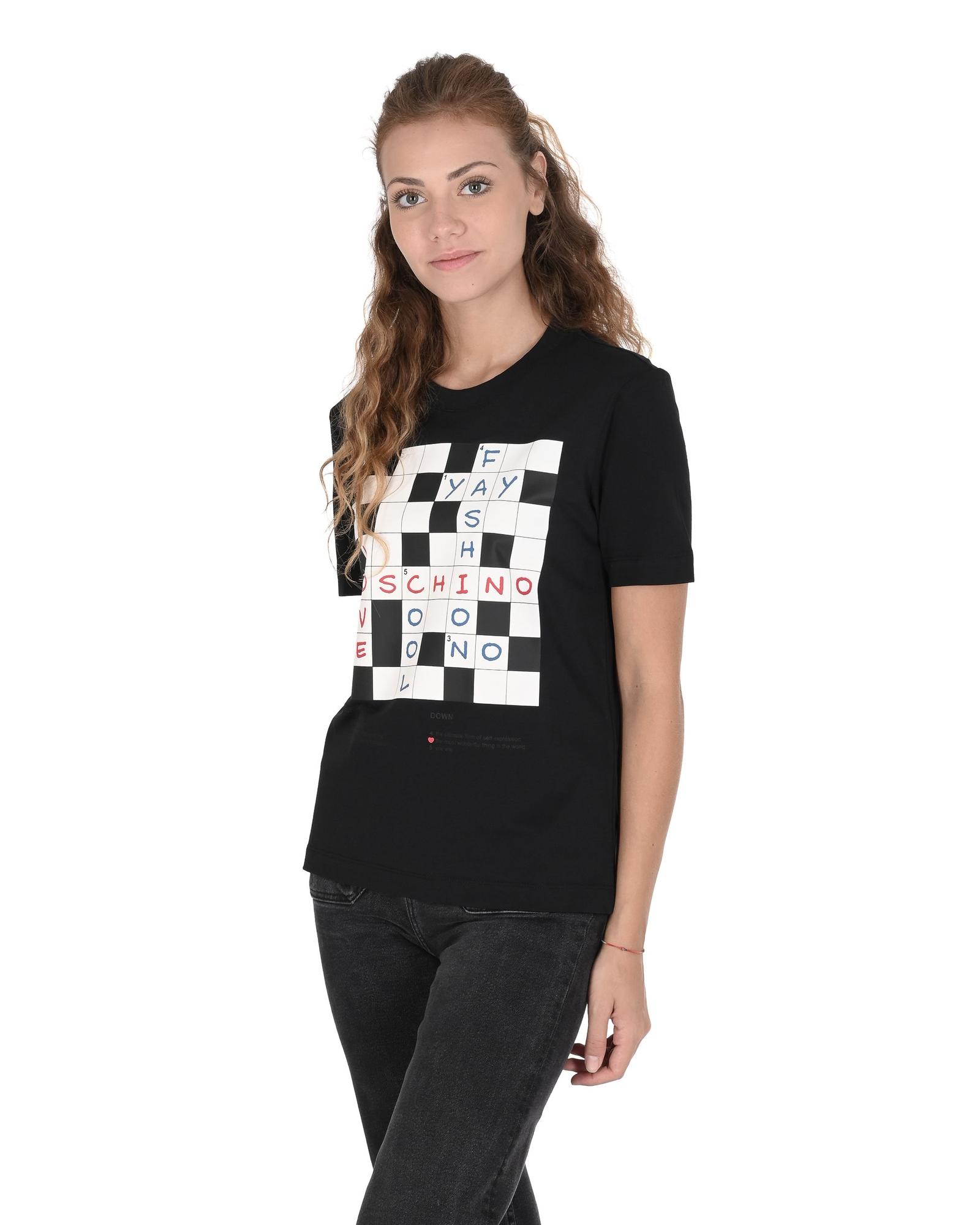 Love Moschino Crossword T-Shirt for Women – Black – 38 IT