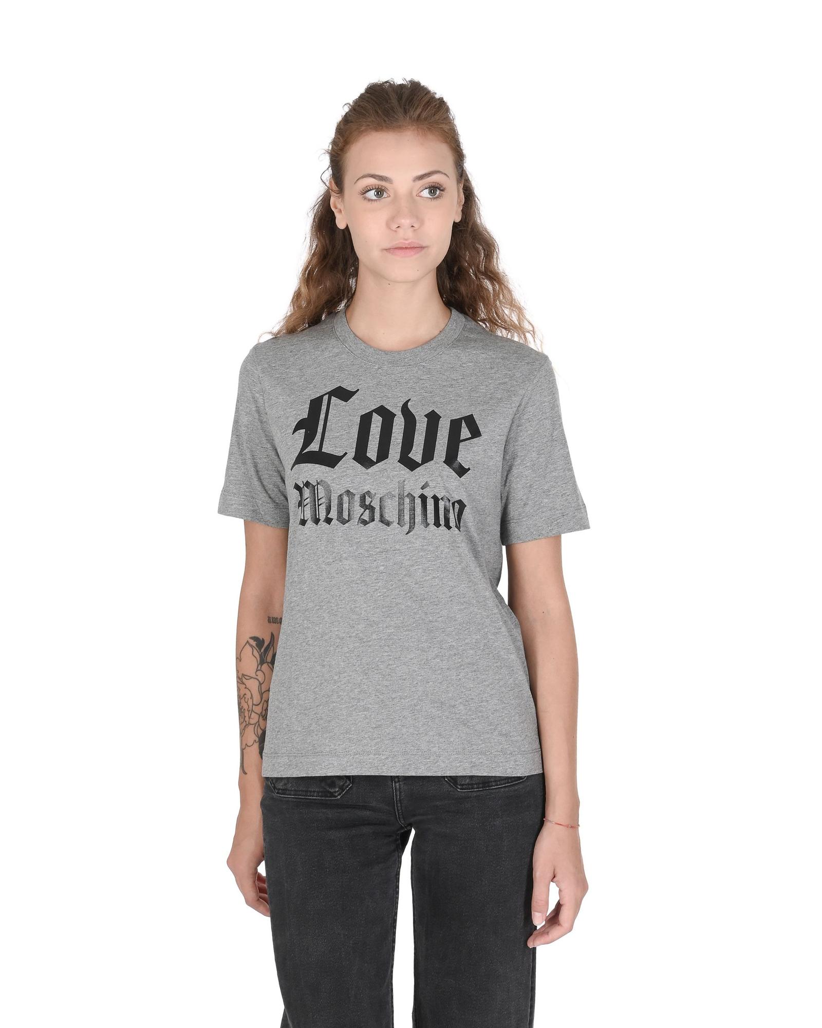 Love Moschino Women’s Grey T-Shirt with Gothic Logo – 40 IT