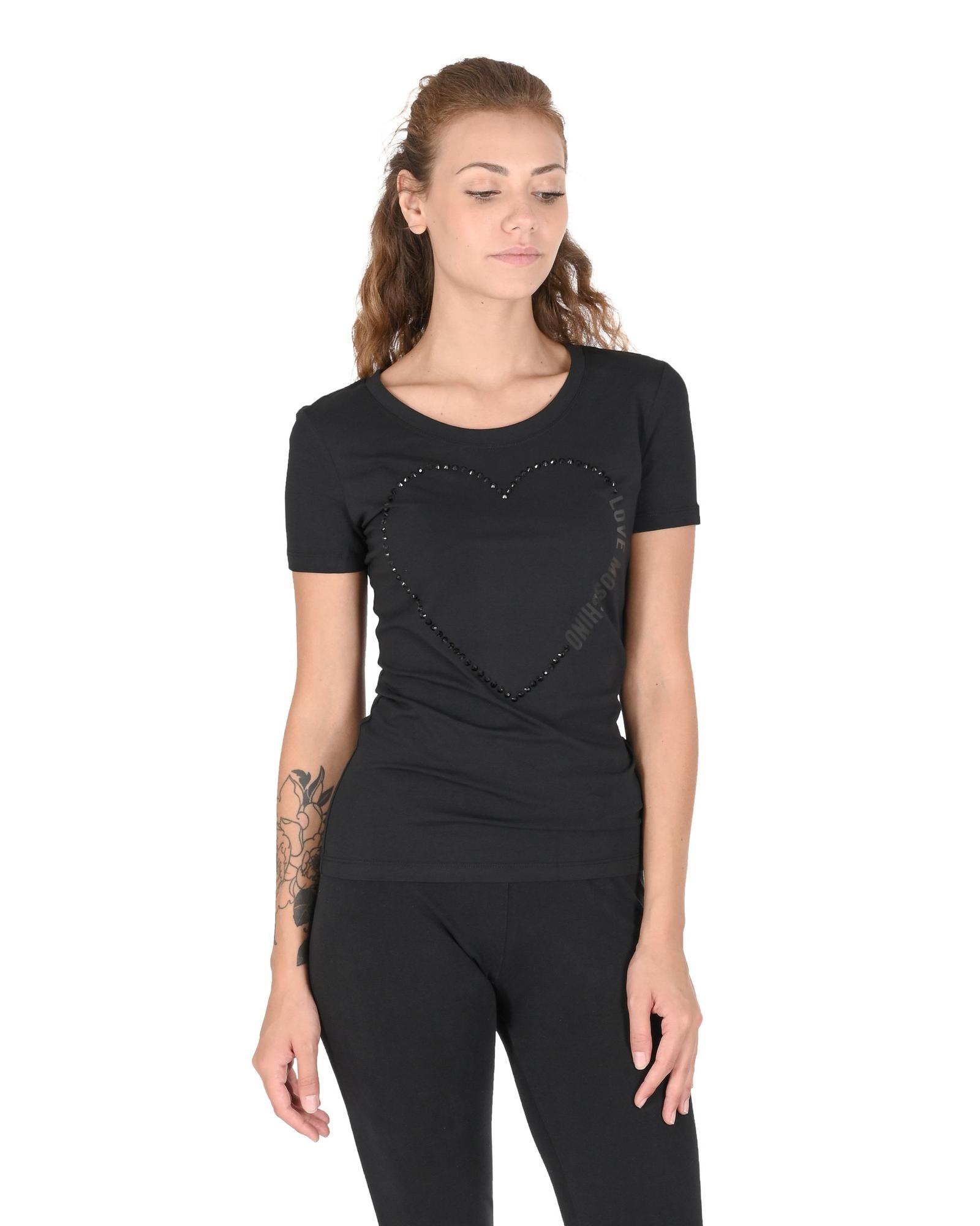 Love Moschino Women’s Heart Embellished T-Shirt – Black – 42 IT