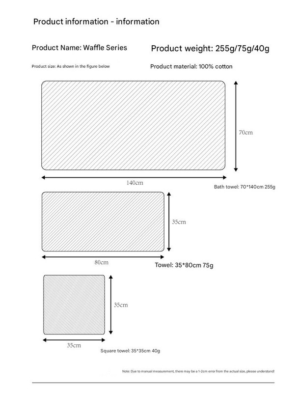 This product does not contain a lithium battery. Please note that due to manual measurement, there may be a 1-2cm discrepancy with the actual size. It is recommended to wash towels before first use.