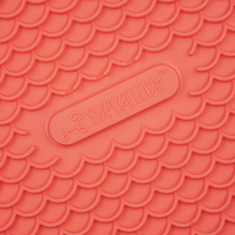 Made from thick, food-grade silicone that won’t curl or tear, it’s built to last through enthusiastic licking and regular dishwasher cycles. Use it as a standalone enrichment tool, a calming aid during bath time, or as a lid for your Super Feedy Slow Feeder Bowl to prep meals ahead or take food on the go. Simple, smart, and stress-reducing — this mat does it all.