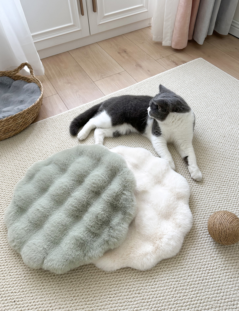 Crafted from ultra-soft, high-quality faux fur, this mat offers a gentle and warm embrace, perfect for keeping your pet comfortable, especially during cooler autumn and winter months. Its unique cloud-like, scalloped edge design adds a touch of charm to your home decor while providing a defined space for your cat.