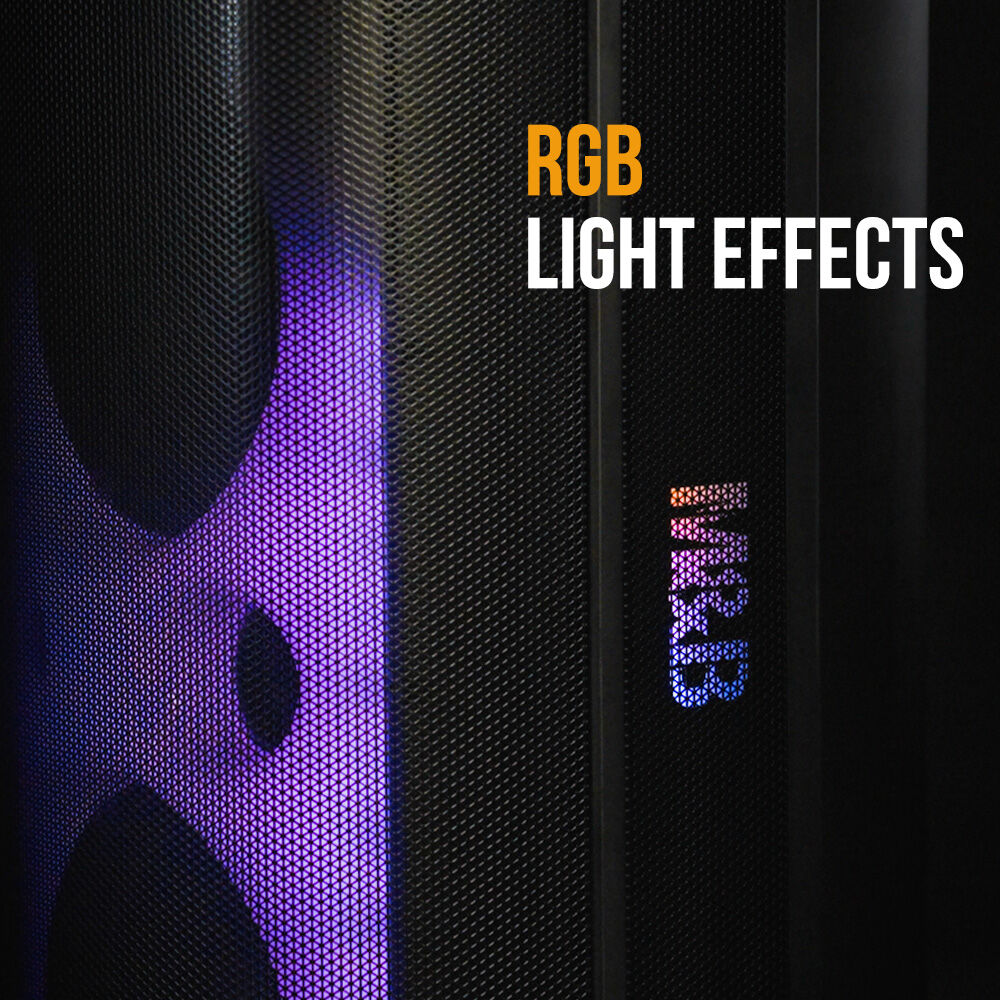 M&B Portable Splash Proof 120W Bluetooth Party Speaker with Karaoke Microphone, IPX4, TWS Pairing, Multi-Input, Lithium Battery, RGB, USB Charging