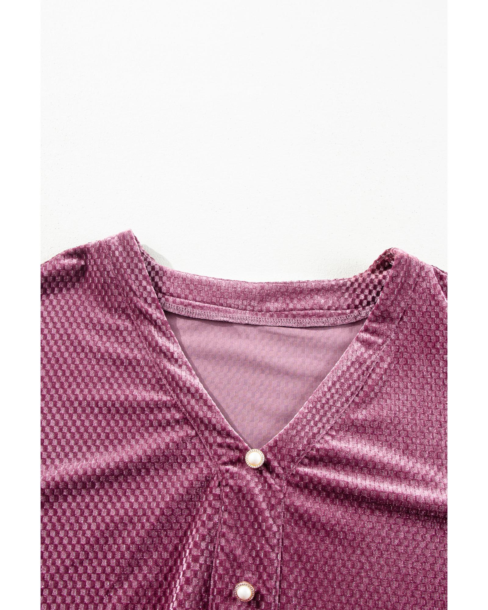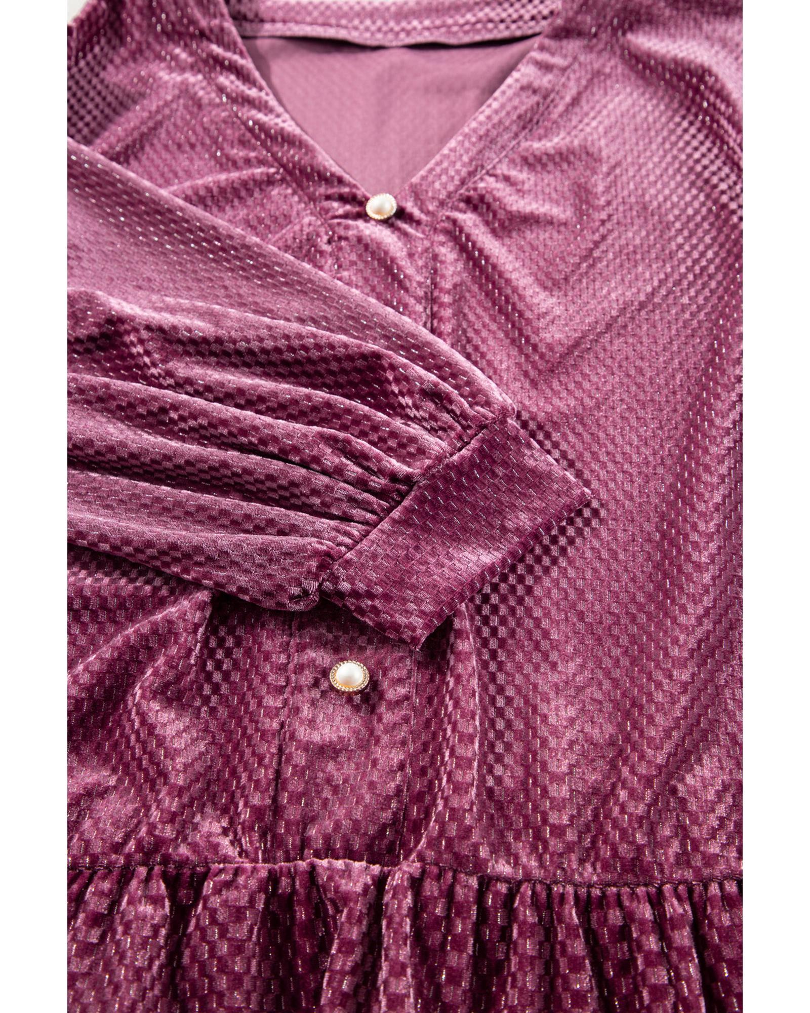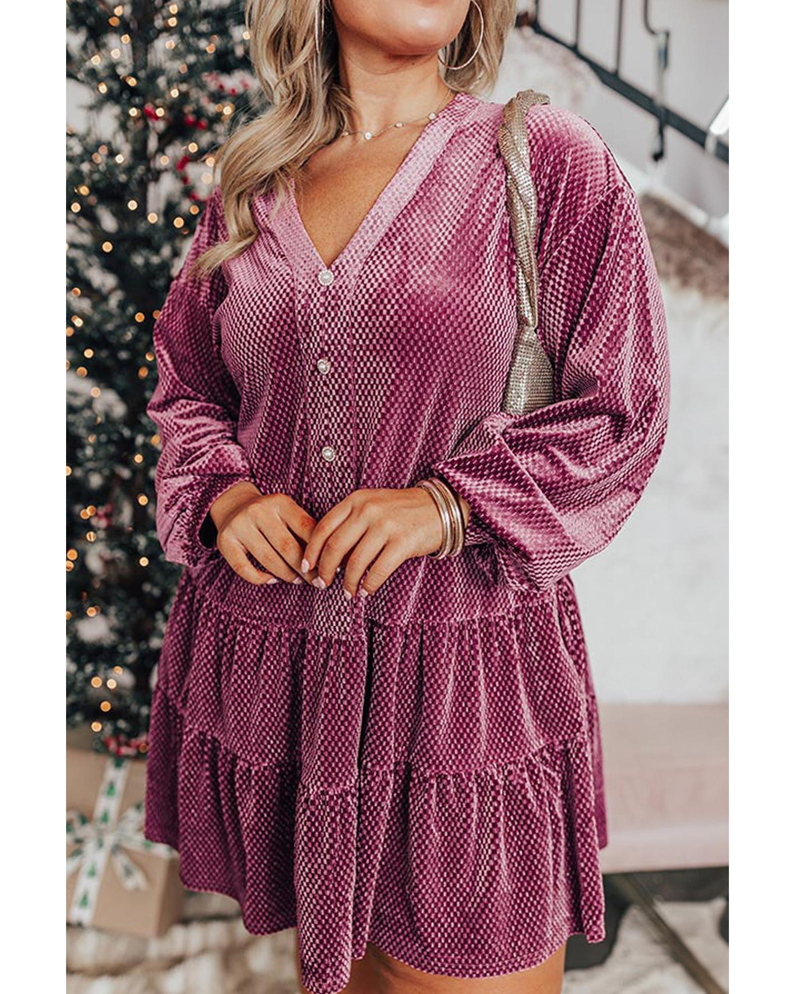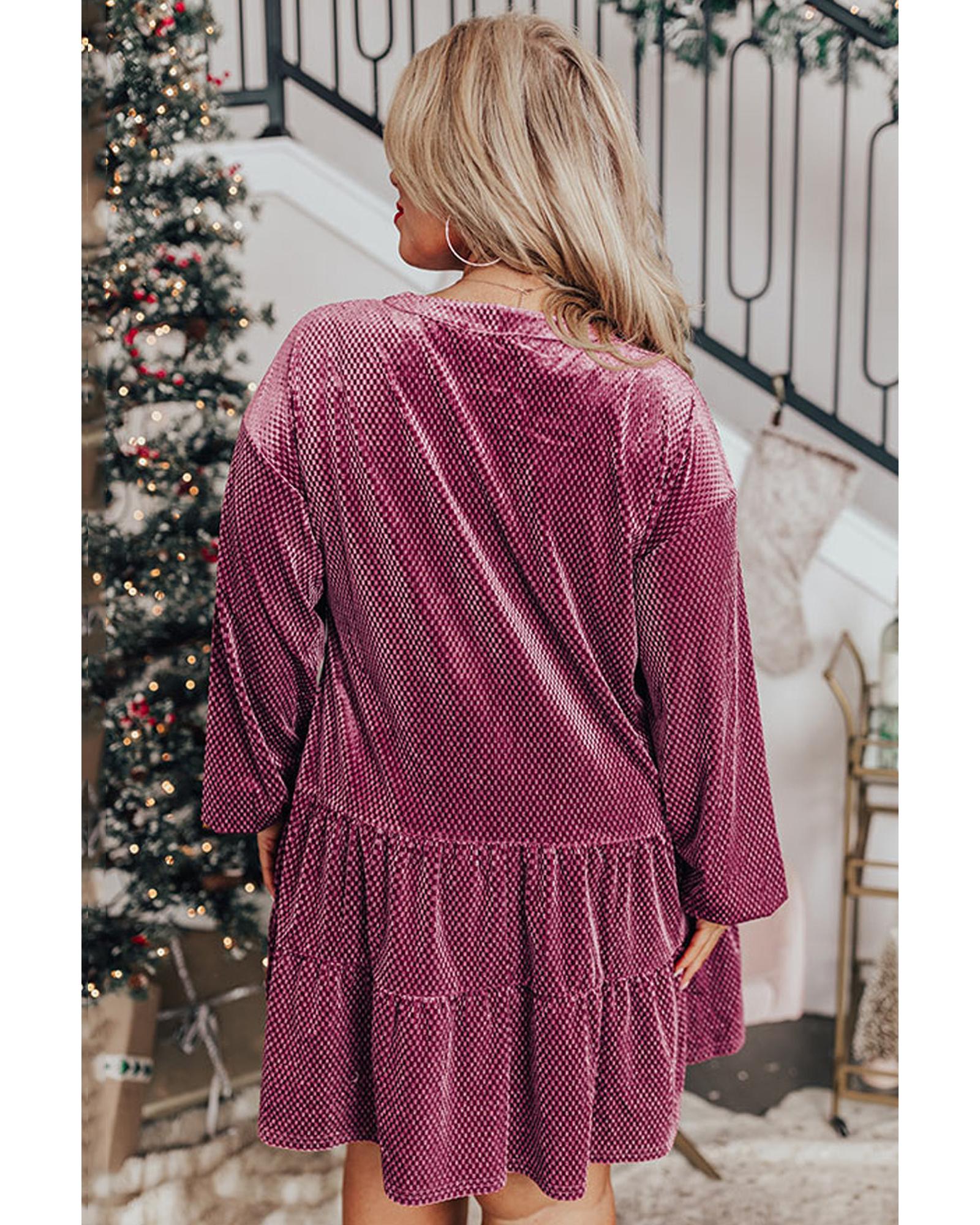• Meadow Mauve Plus Size Textured Velvet Tiered Buttons Tiered Dress