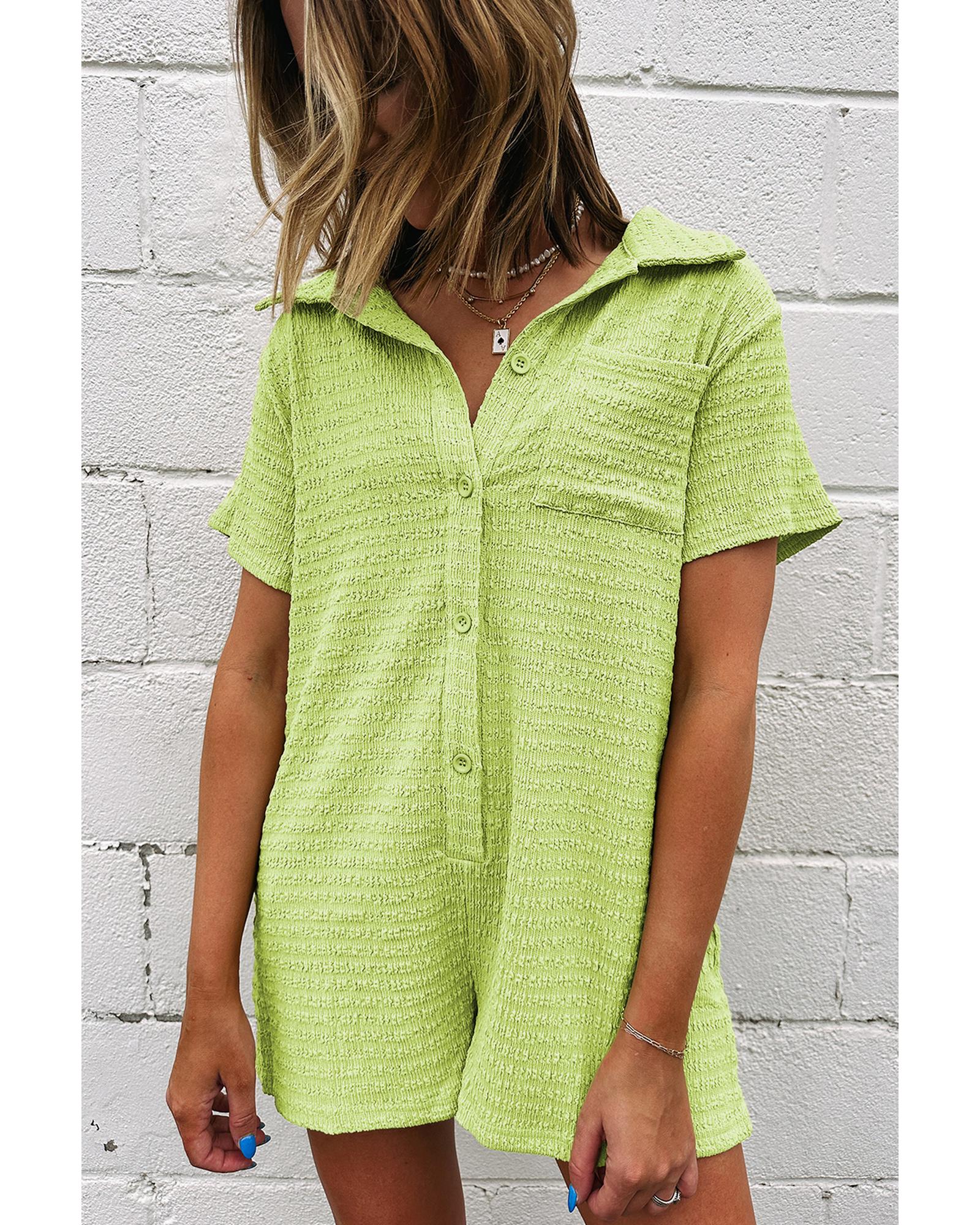 Meadow Mist Green Textured Short Sleeve Patched Pocket Buttoned Shirt Romper - L