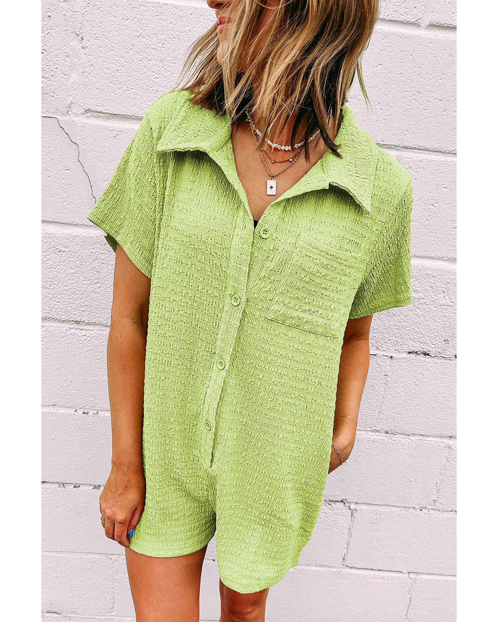 Meadow Mist Green Textured Short Sleeve Patched Pocket Buttoned Shirt Romper - S