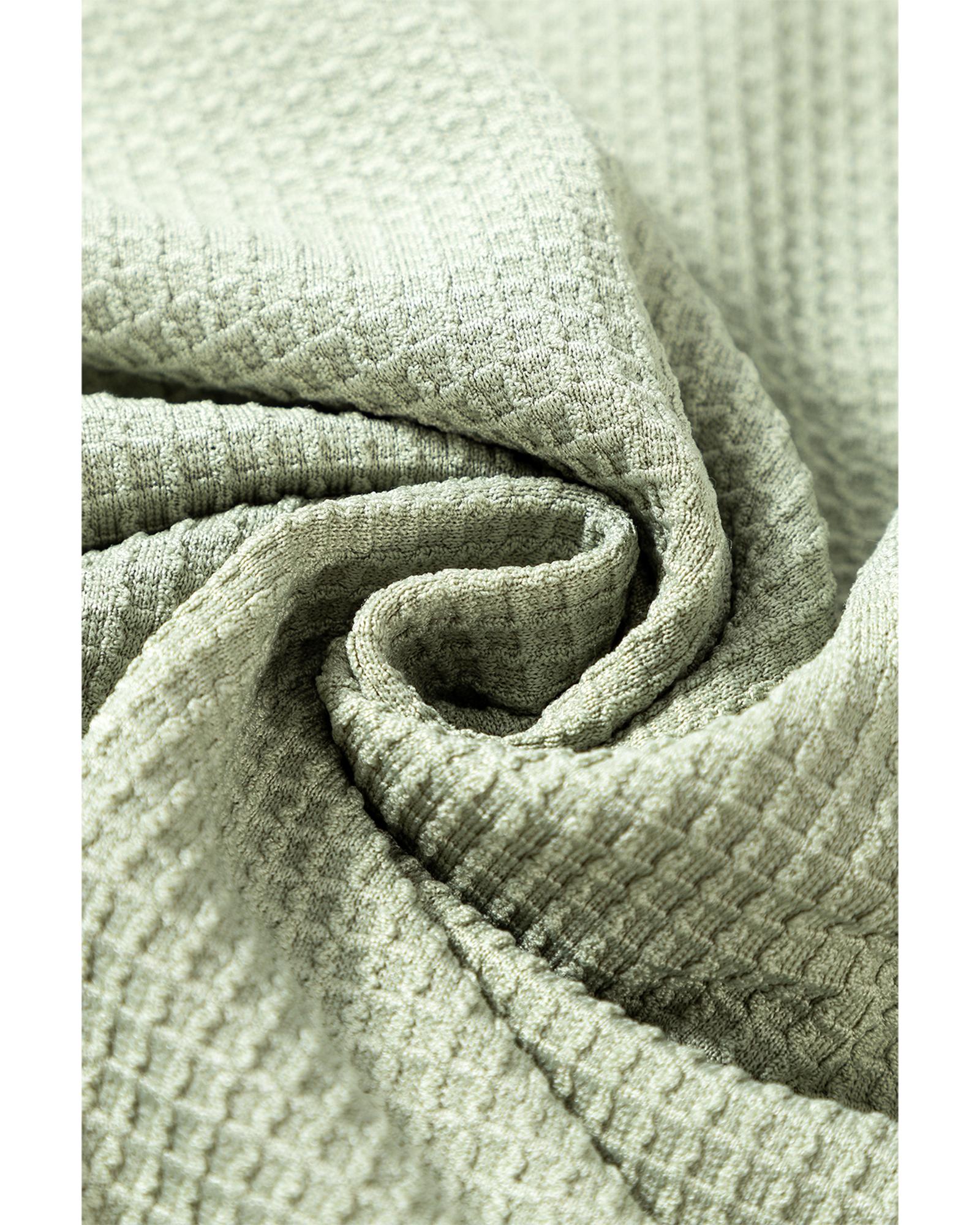 Meadow Mist Green Waffle Knit Wide Bracelet Sleeve Patchwork Raglan Top – L