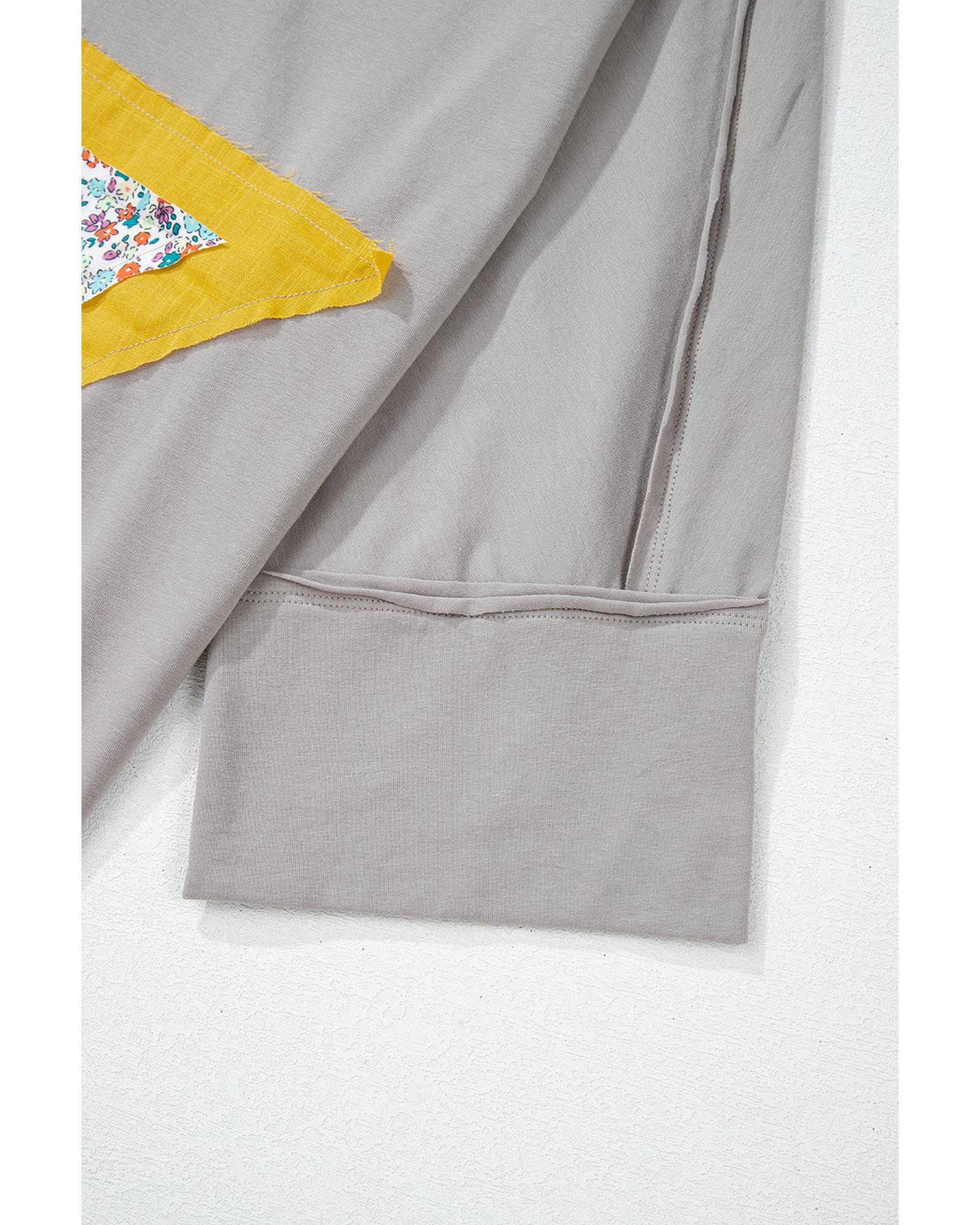 Medium Grey Floral Star Patched Pattern 3/4 Sleeve Plus Size Top – 2X