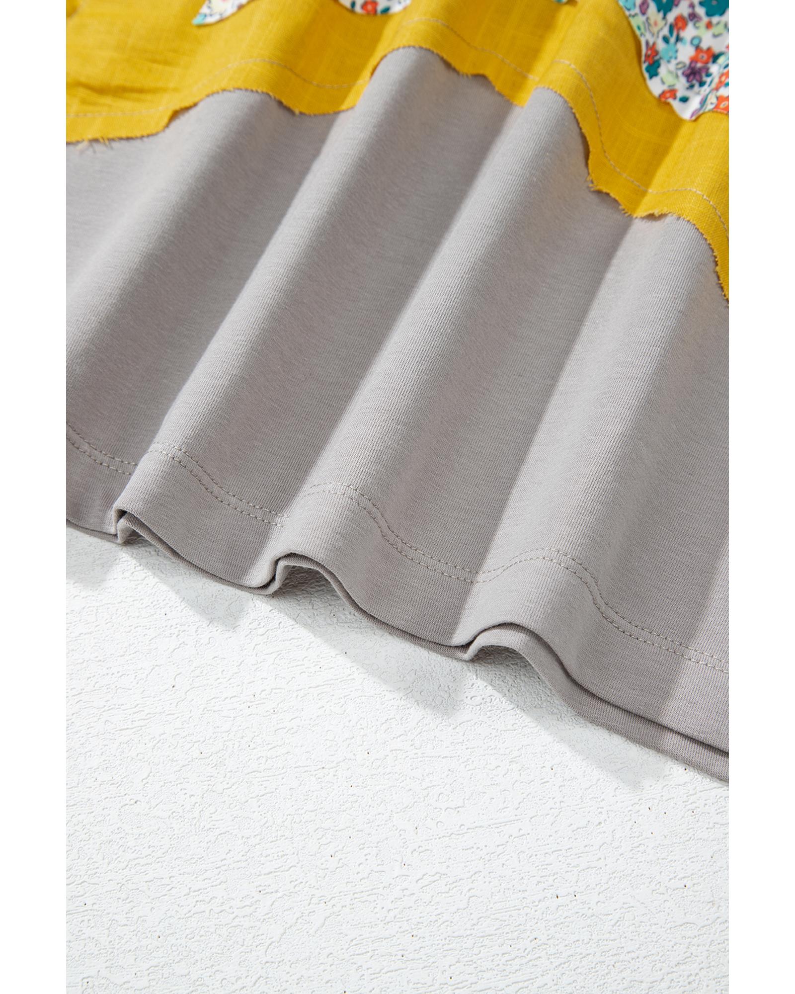 Medium Grey Floral Star Patched Pattern 3/4 Sleeve Plus Size Top – 3X