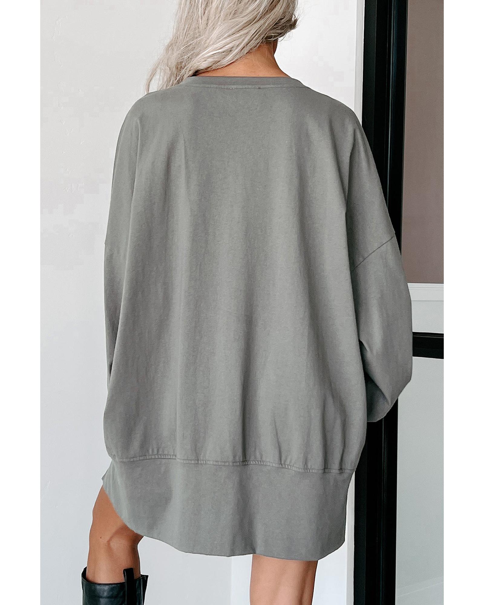Medium Grey Sequin Happy Halloween Graphic Notched Neck Long Sleeve Loose Top – 2XL