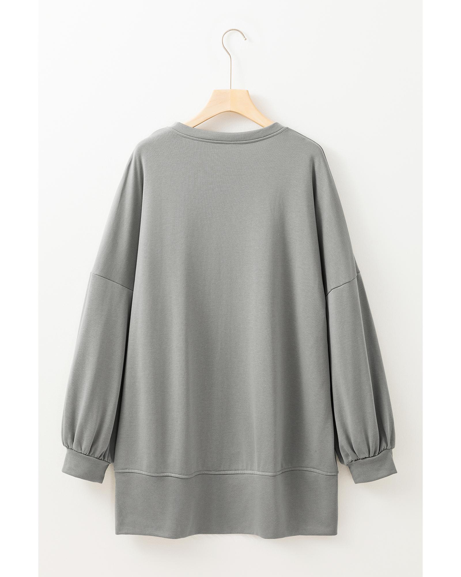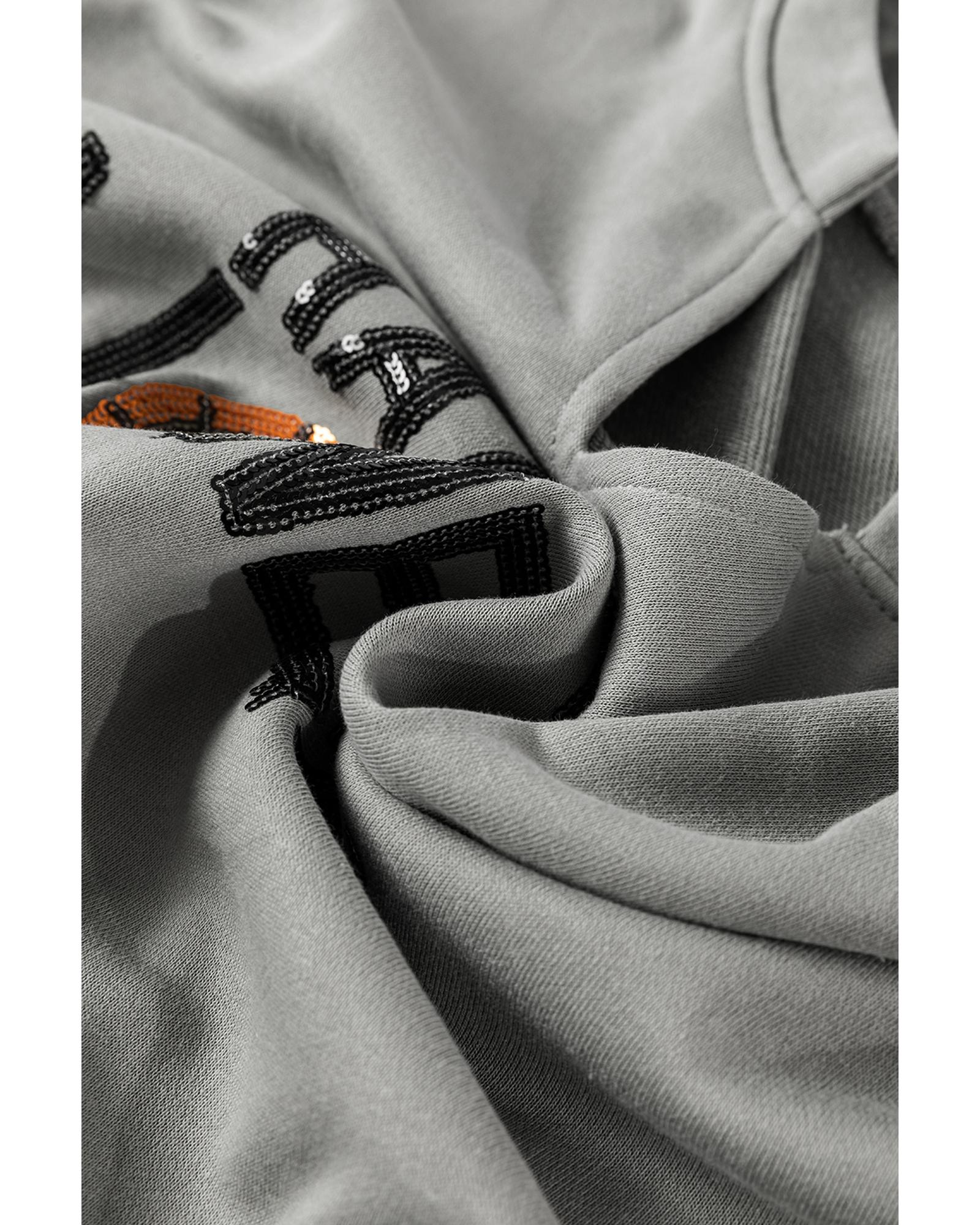 Medium Grey Sequin Happy Halloween Graphic Notched Neck Long Sleeve Loose Top – S