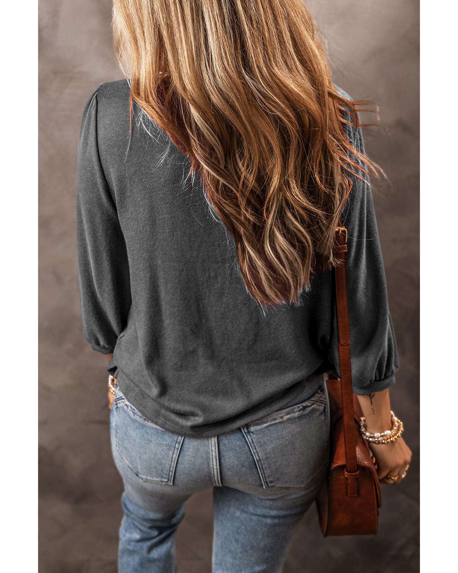 Medium Grey Solid Color 3/4 Sleeve Round Neck Blouse – XL