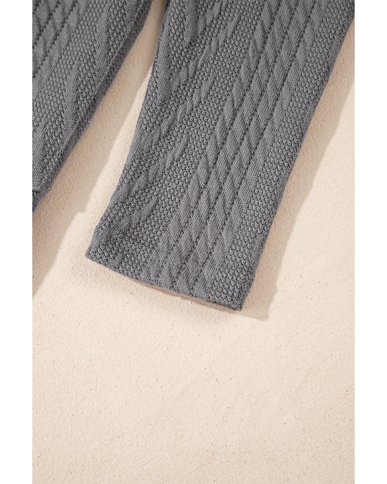 Medium Grey Solid Textured Open Front Cardigan with Pocket – M
