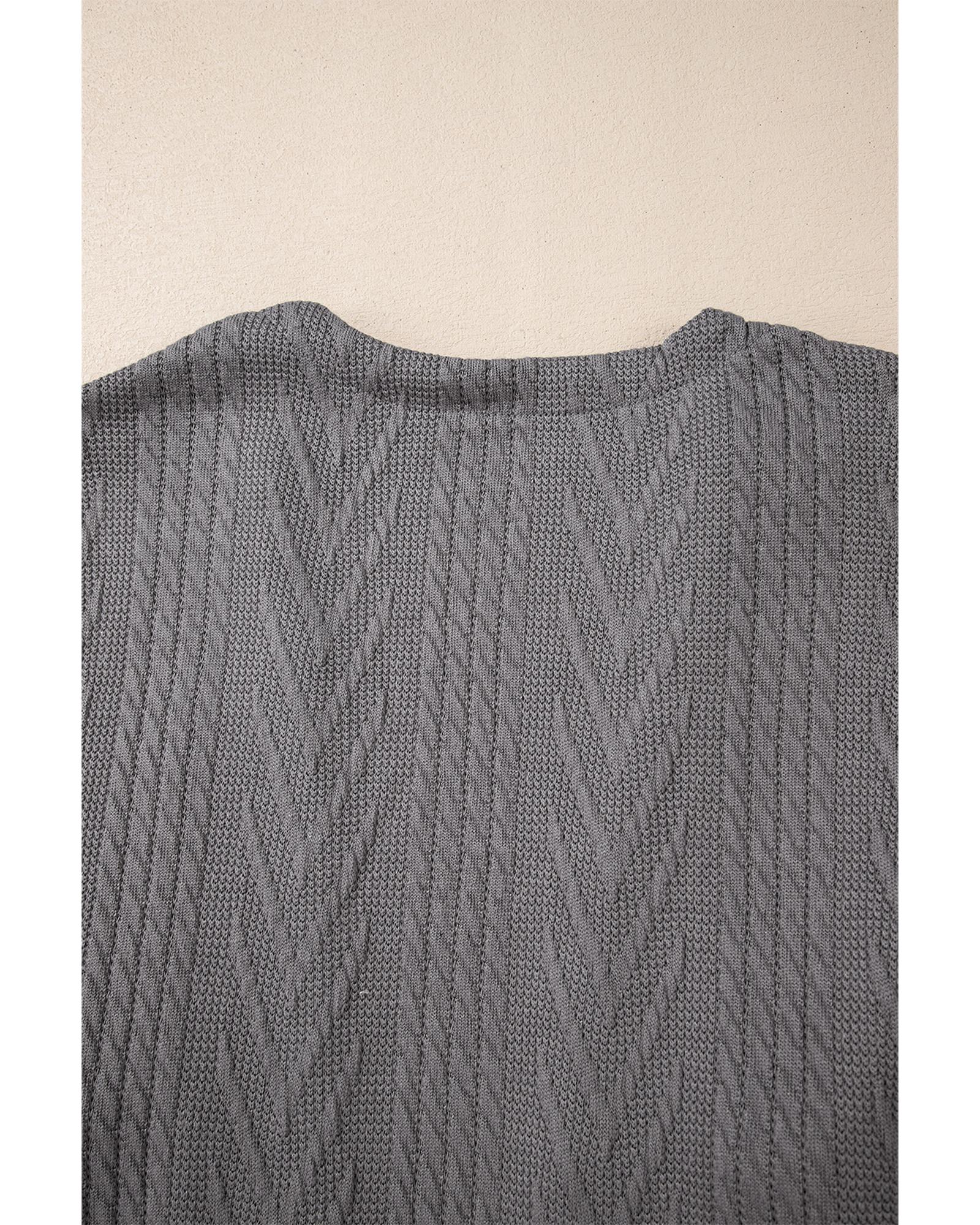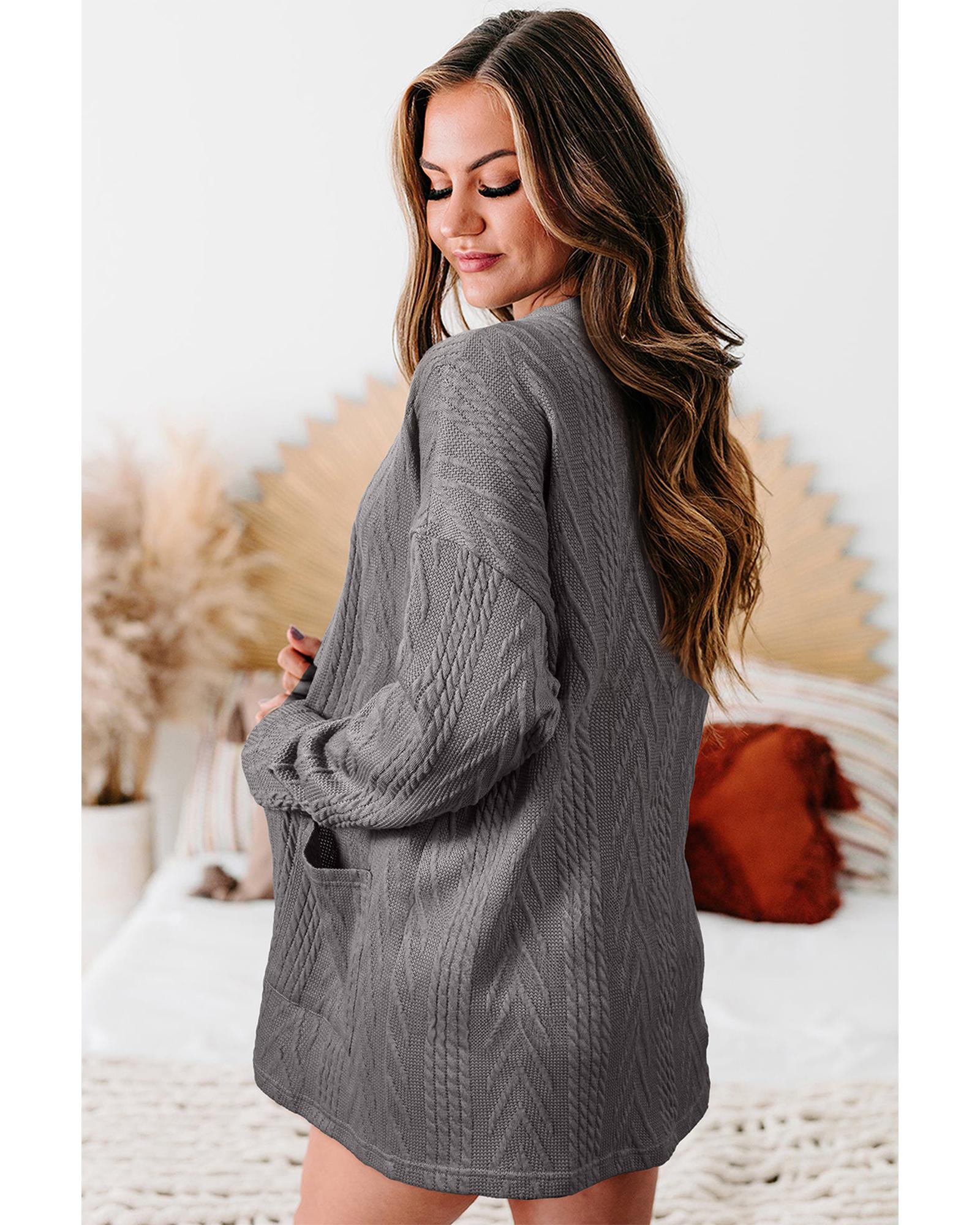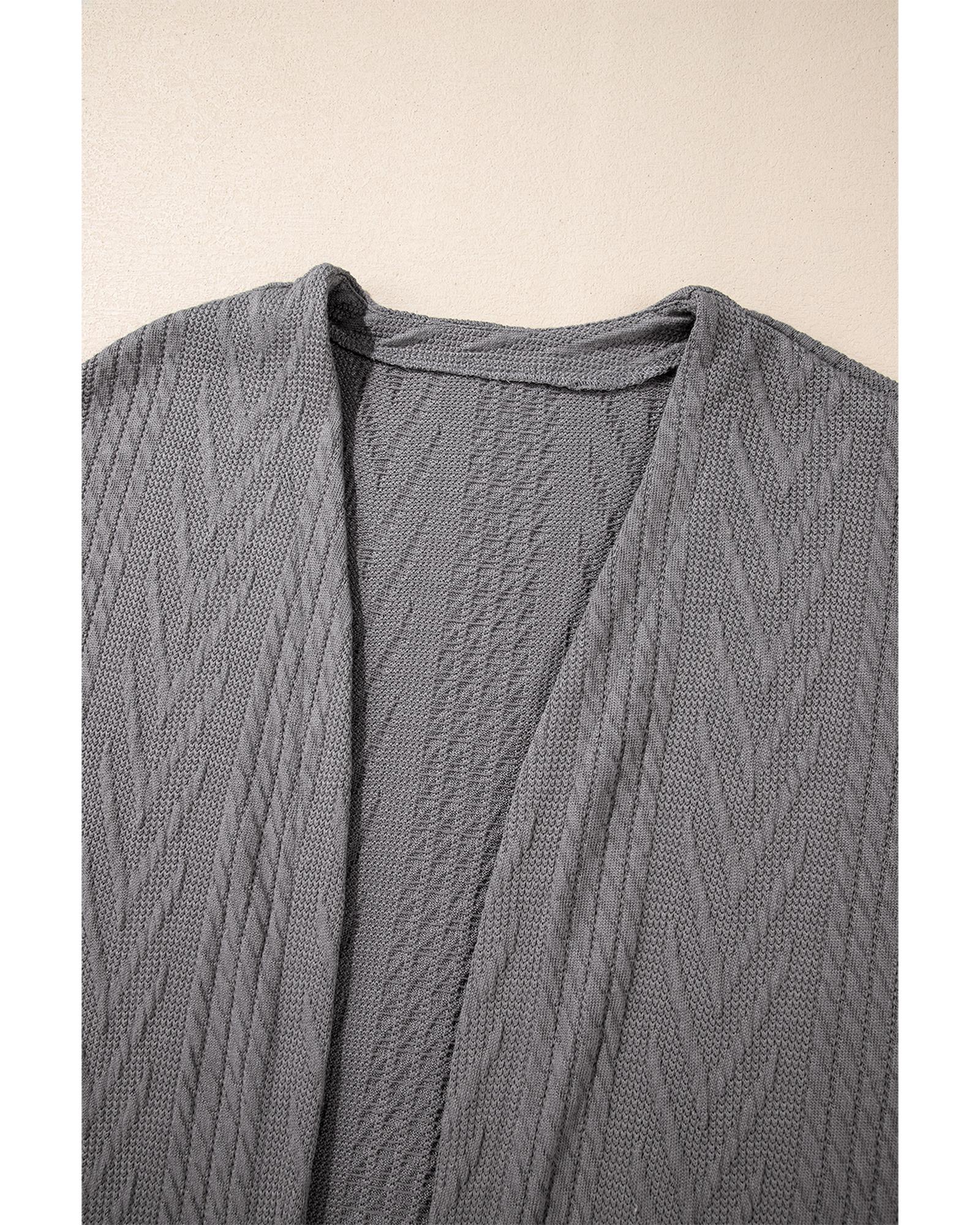 Medium Grey Solid Textured Open Front Cardigan with Pocket – XL