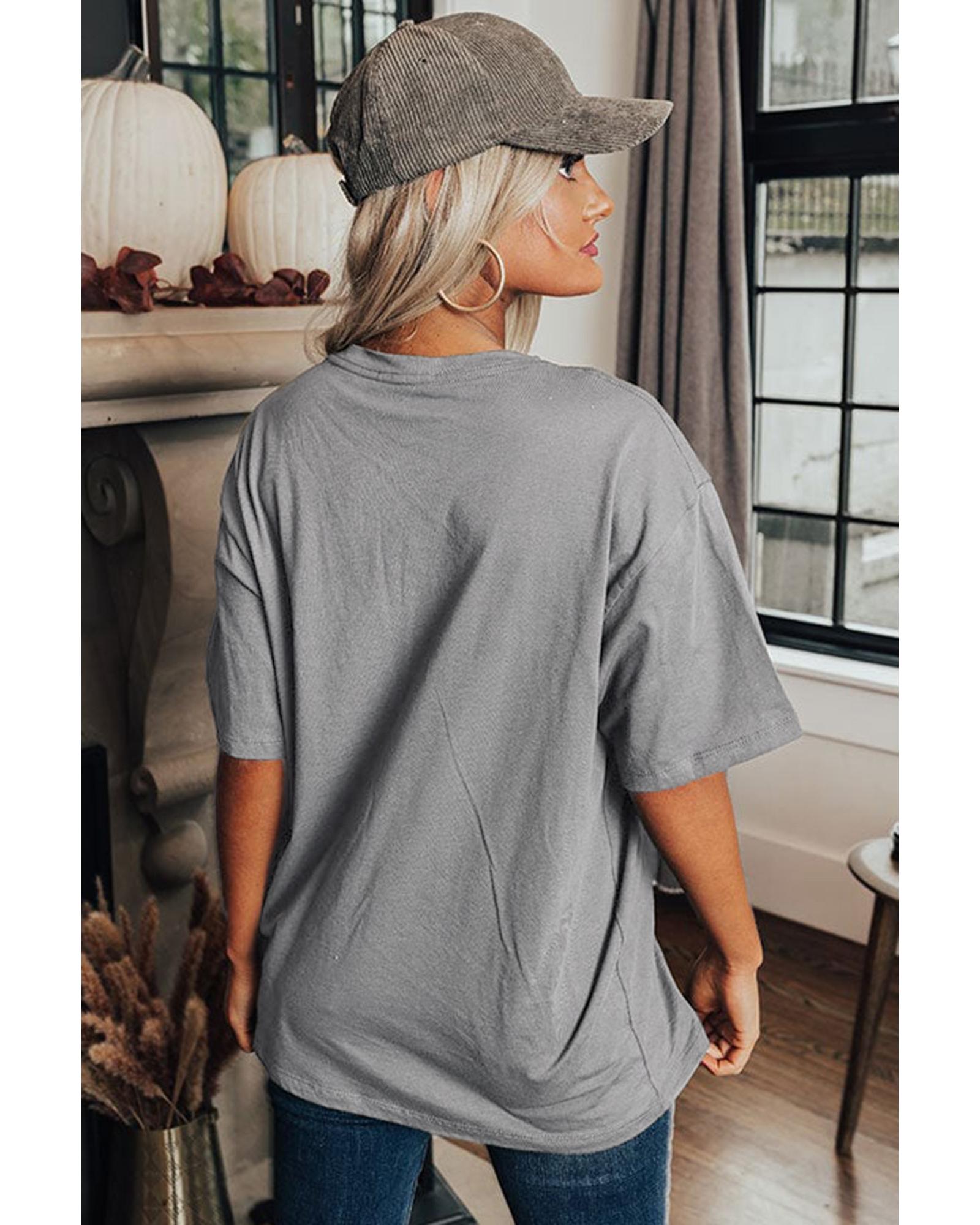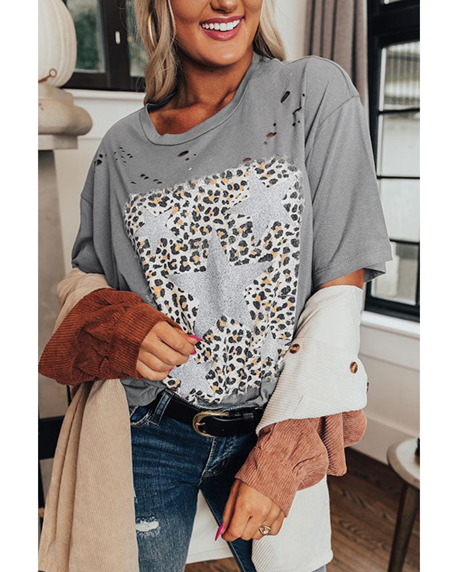 Medium Grey Stars Leopard Graphic Distressed Tee – L