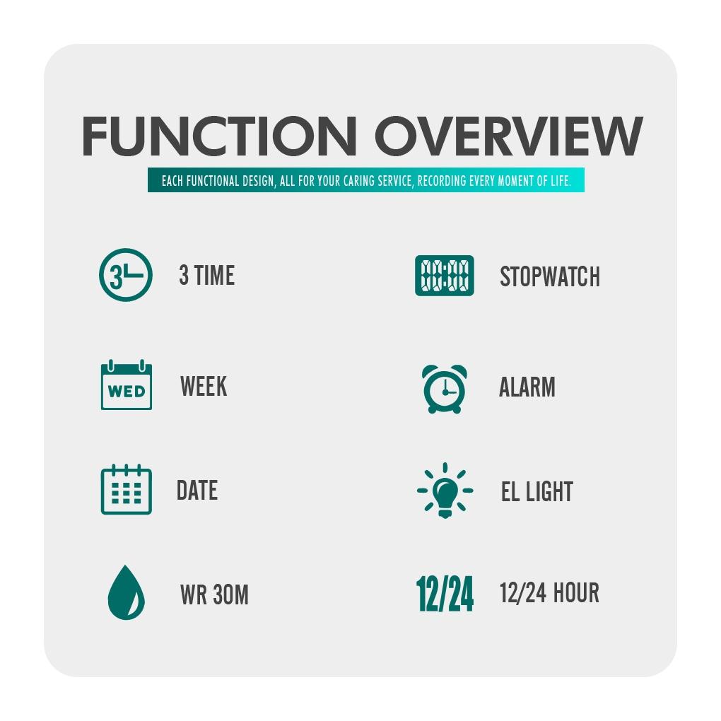 • Material: Zinc Alloy Case, Stainless Steel Bottom Cover, Ordinary Glass Mirror, Silicone/Stainless Steel Strap