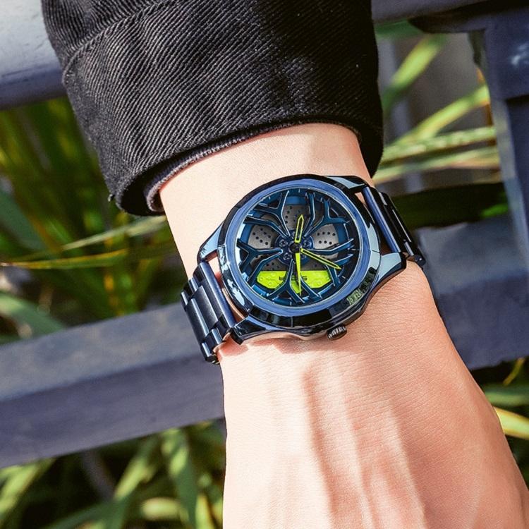 Men Casual Steel Band Quartz Watch – P1065 Wheel Series – Blue Red