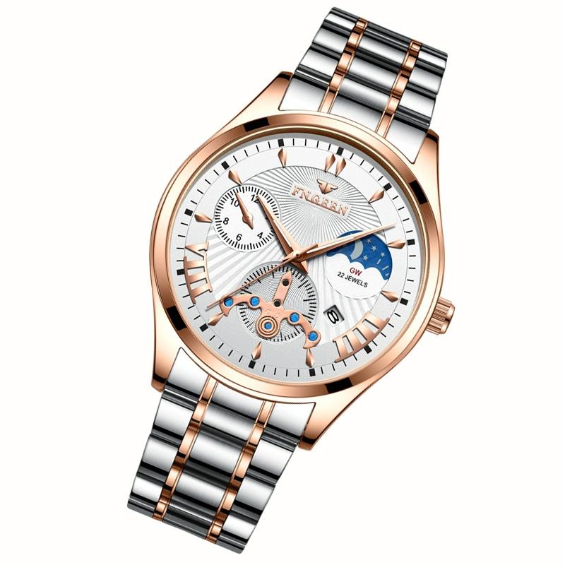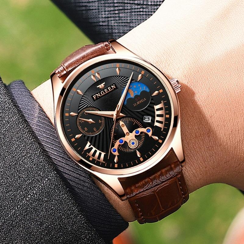 Men Luminous Casual Quartz Watch – 5606 – Between Rose Gold Rose Shell Black Surface