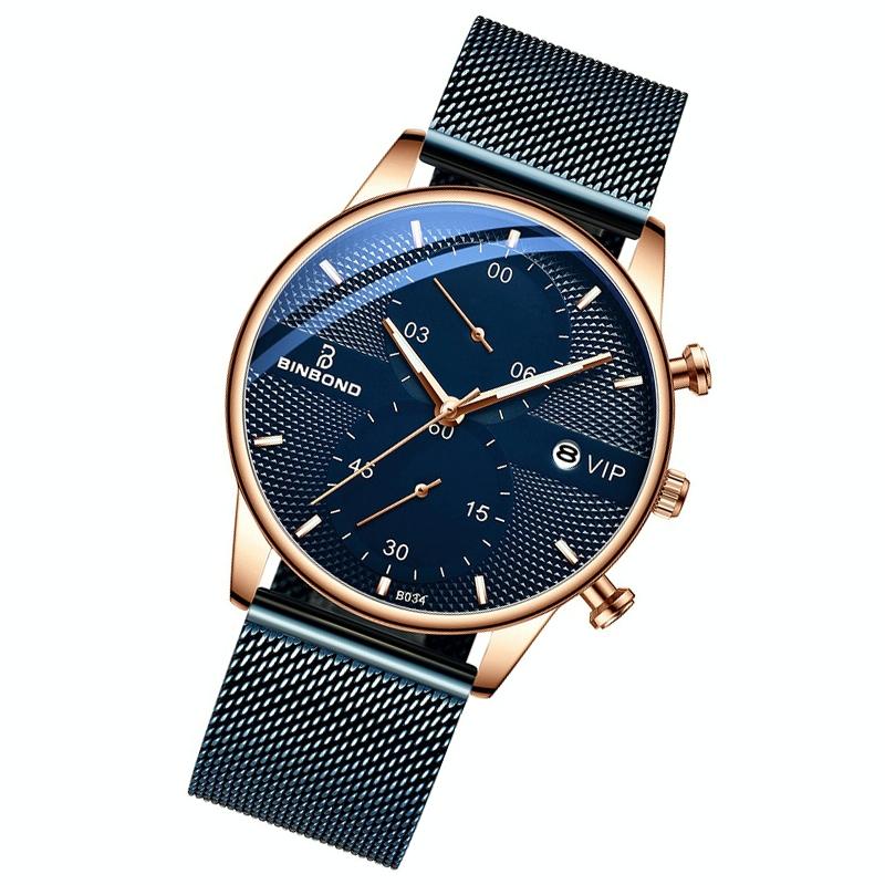 Men Multifunctional Luminous Quartz Watch – Business Style – Black Mash Black Shell Black Surface