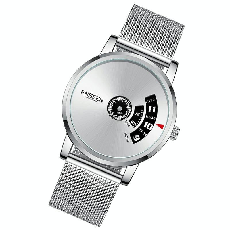 Men Non-pointer Quartz Watch – S230 – White Mash White Steel Black Surface