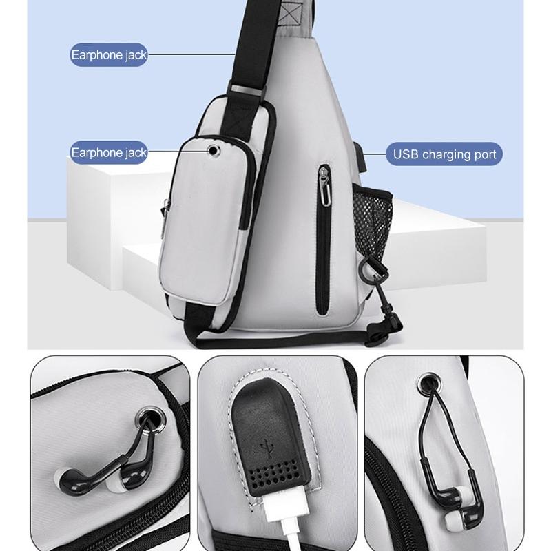 Men Oxford Cloth Chest Bag Casual Crossbody Shoulder Backpack – Light Grey
