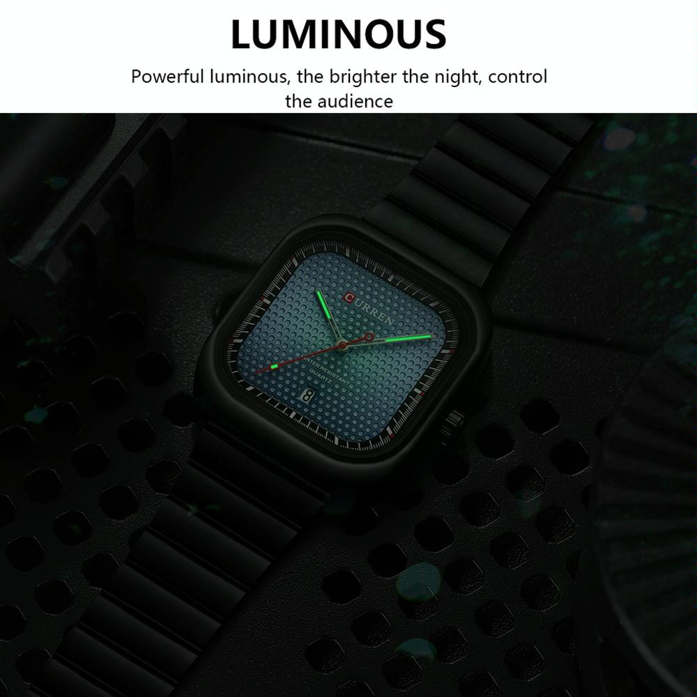 Men Square Steel Strap Quartz Watch – Casual Style – Black Shell Black