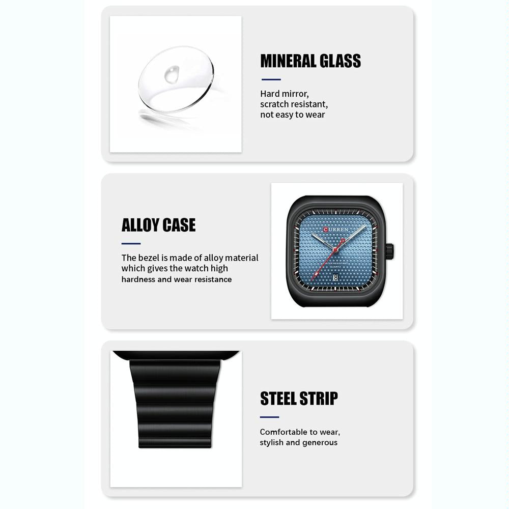 • 1 x 8460 Casual Steel Strap Square Men Quartz Watch