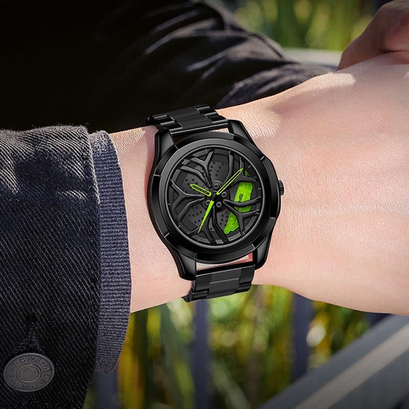 • 1 x 1065 3D Hollow Out Wheel Non-Rotatable Dial Quartz Watch For Men Steel Belt