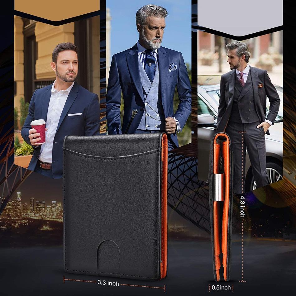 Men Vintage Leather Rfid Wallet – Flat Pattern Black Inside
