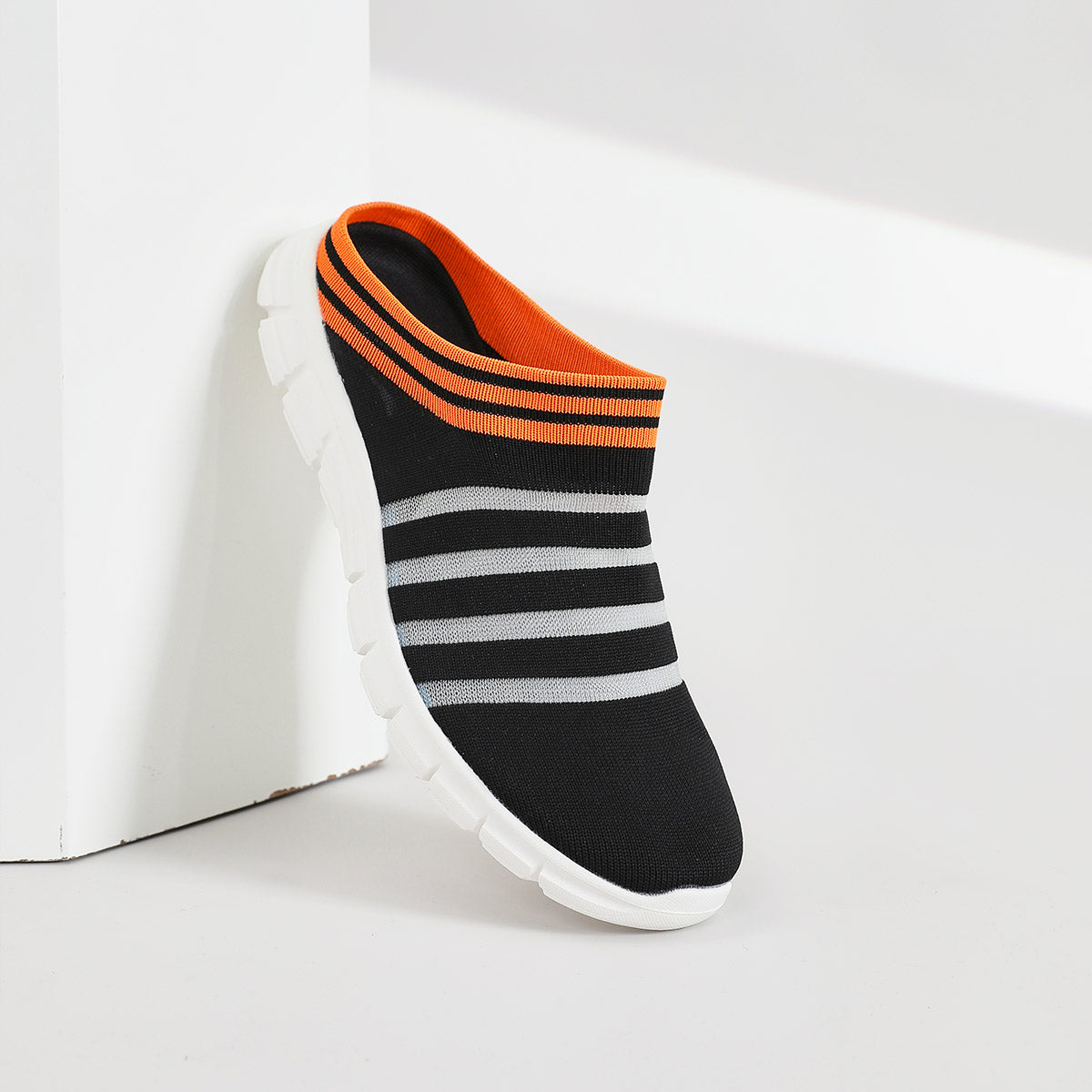 Designed for laid-back summer days, these lightweight slip-ons feature a soft knit upper and an easy backless design that makes them a breeze to wear. The skin-friendly material hugs your feet gently, while the flexible EVA sole provides cushioning for all-day comfort. With breathable construction and vibrant striped detailing, they’re your go-to choice for effortless style and cool, dry feet. (Matching ladie’s version available!)