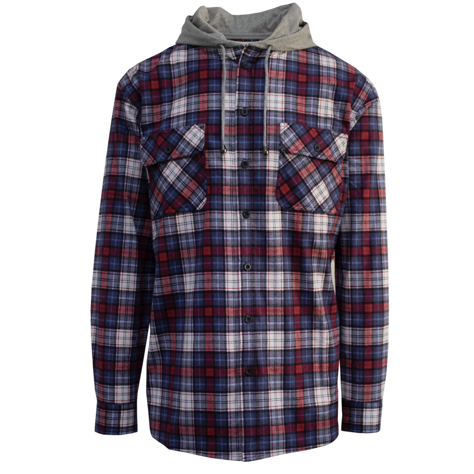 Men’s Cotton Flannelette Shirt w Jersey Hood Long Sleeve Flannel