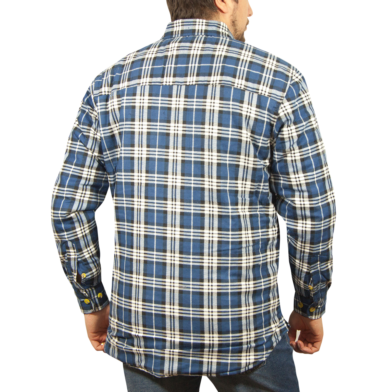 Mens Flannelette Long Sleeve Shirt 100% Cotton Check - Full Placket - Spanish Blue - 3XL