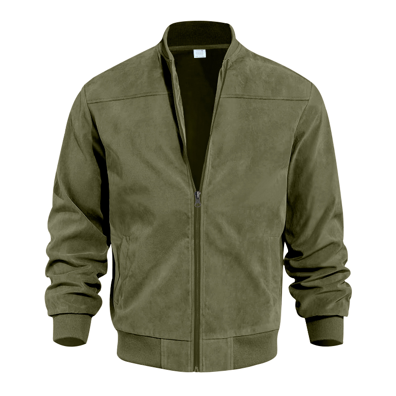 Men’s Varsity Bomber Flight Jacket Breathable Windbreaker Zip Coat Faux Leather, Green, L