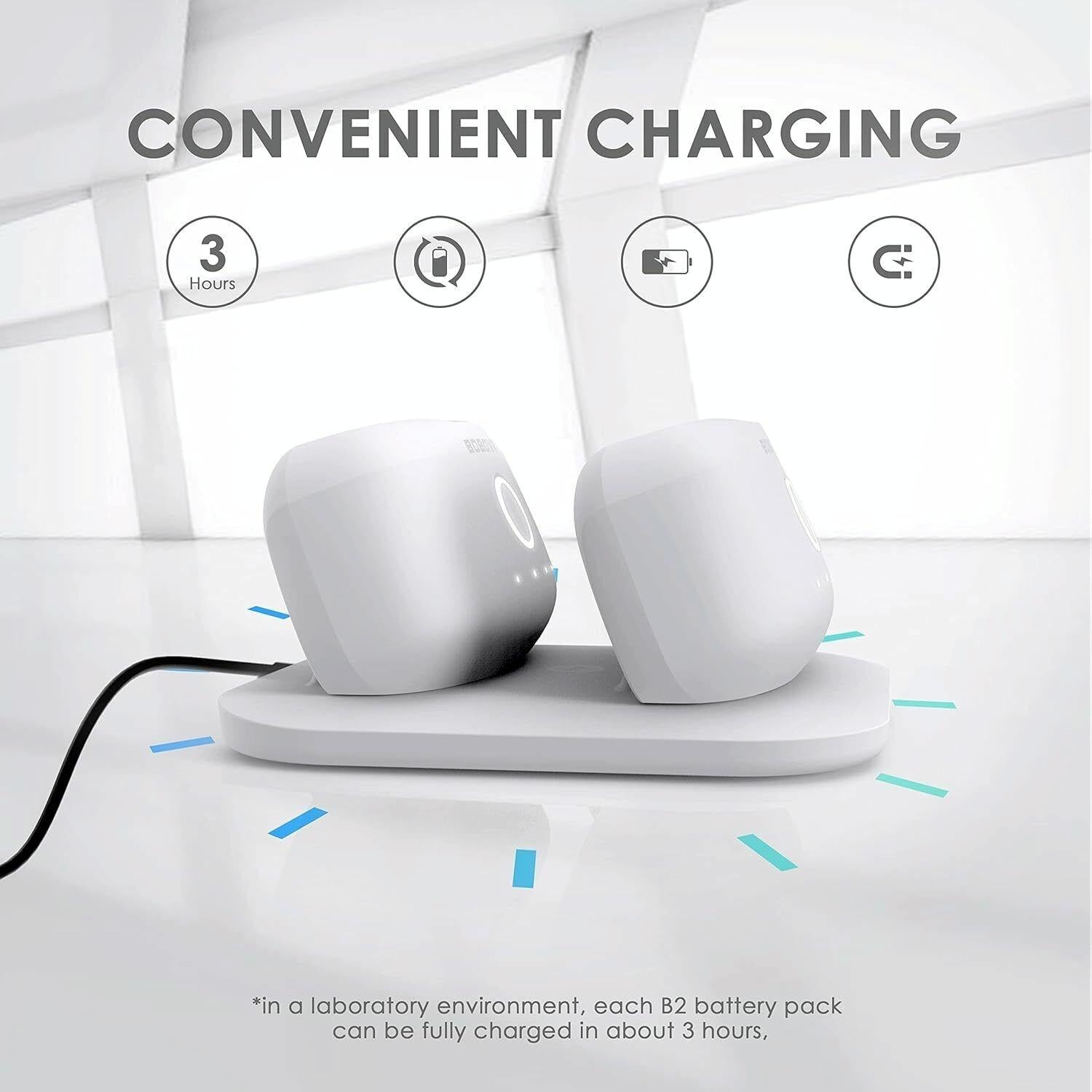 • The charging station has a slim and simple design, saving desktop space, and can charge 2 B2 battery packs simultaneously.