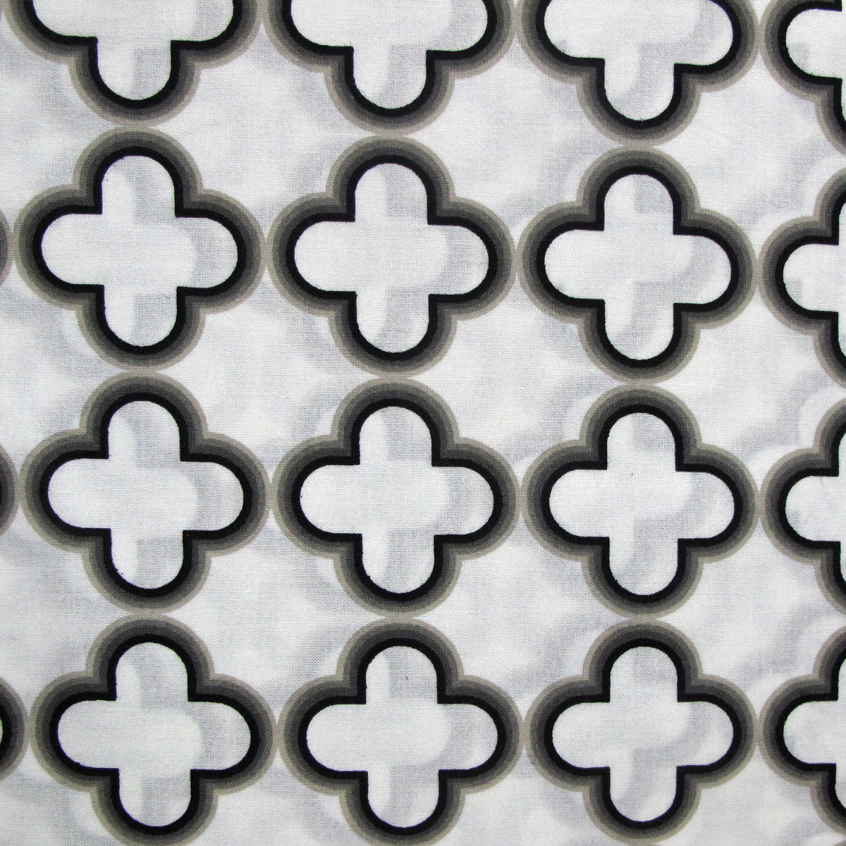 The Mia White 100% Cotton Quilt Cover Set Queen will bring a classic yet chic look to your bedroom. Boasting natural fibre cotton fabric, inspired by the unique palette of neutral background with unique modern design. The design features a quatrefoil pattern printed in white, black, and grey colour tones. Made from soft touch 100% Cotton fabric in 180 thread count for softness you can enjoy all night long.