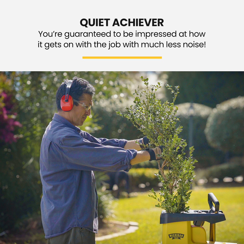 The Michigan electric crushing shredder comes with a flat push stick for safely moving along anything that needs it and has a reverse button to clear things up in the rare event of a jam. The massive translucent 50L container infrequently requires emptying and has an inbuilt safety motor cut-off when it is detached. You’ll love being able to fit up to 10 times more garden waste into your green vegetation bin! Maintaining your yard will be a pleasure with this Michigan electric mulcher.