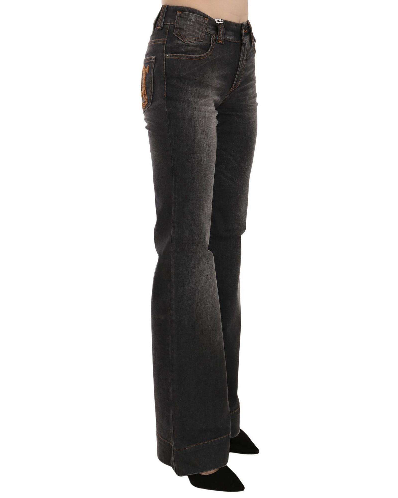 Mid Waist Flared Denim Casual Pants with Logo Details W26 US Women
