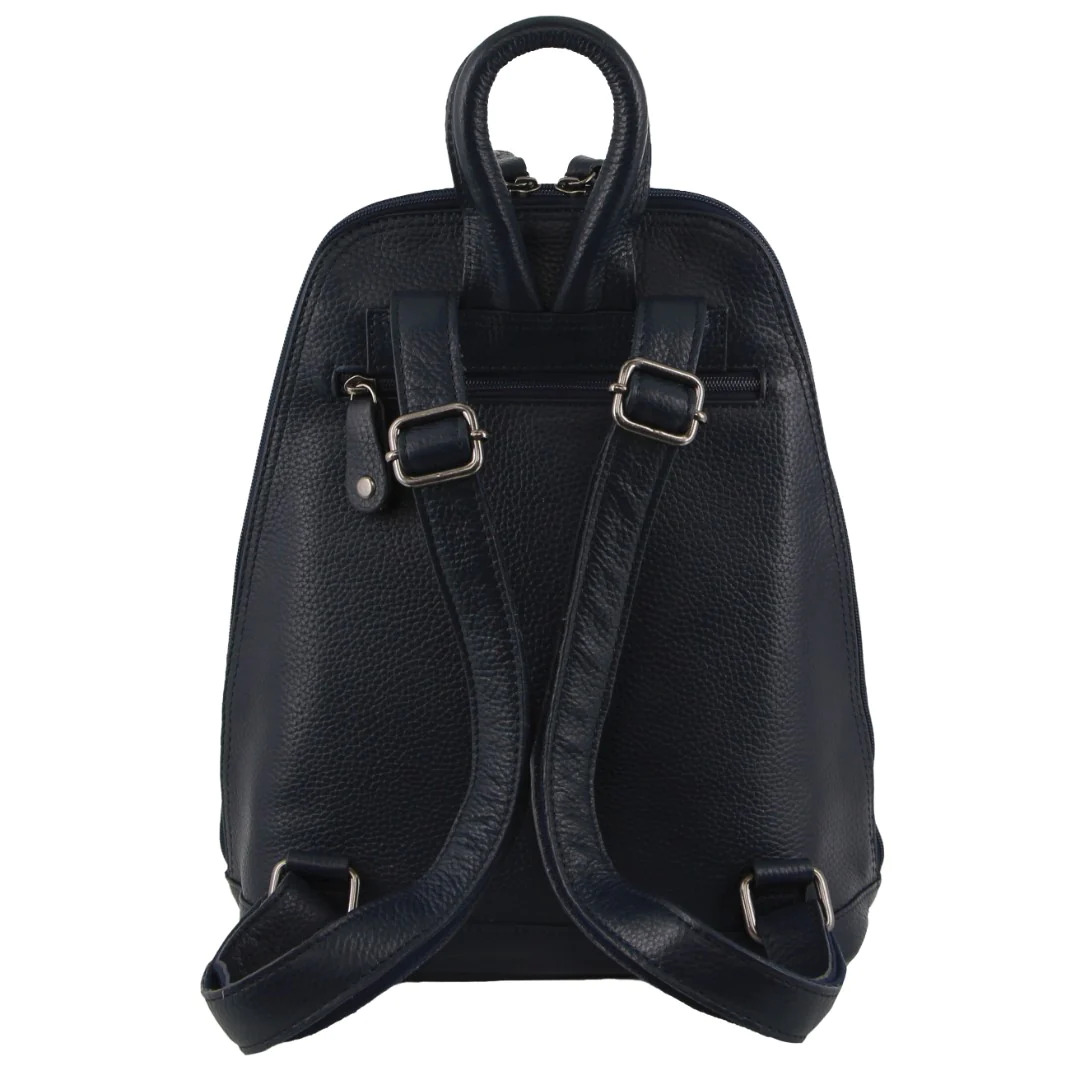 Milleni Womens Twin Zip Backpack Nappa Italian Leather Travel Bag – Navy