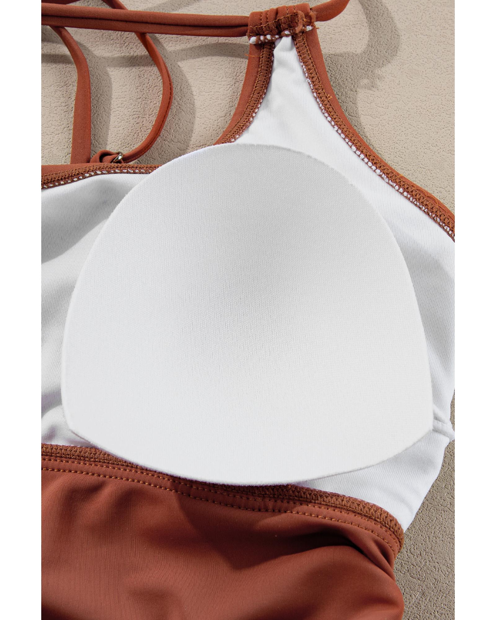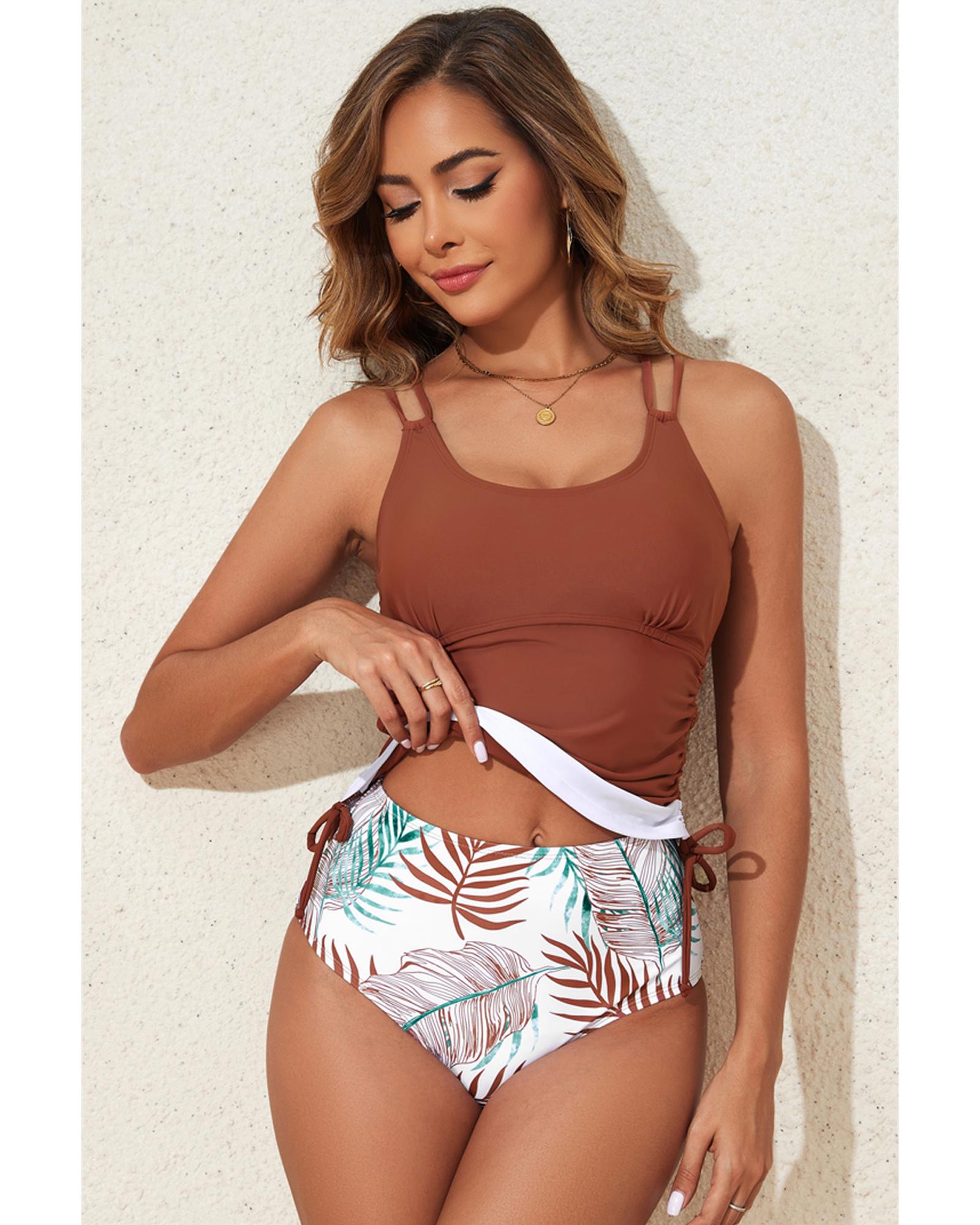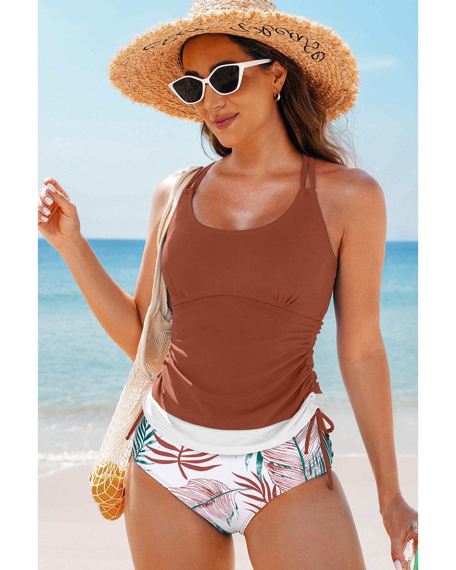 Mineral Red Drawstring Tummy Control Mix-and-match 2pcs Tankini Swimsuit – L