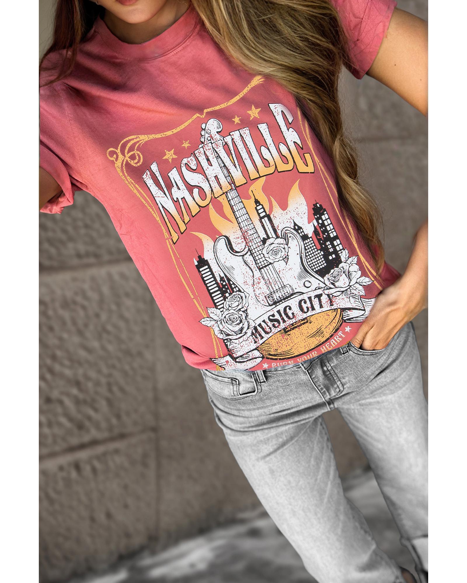 - Graphic tee with Nashville music theme pattern