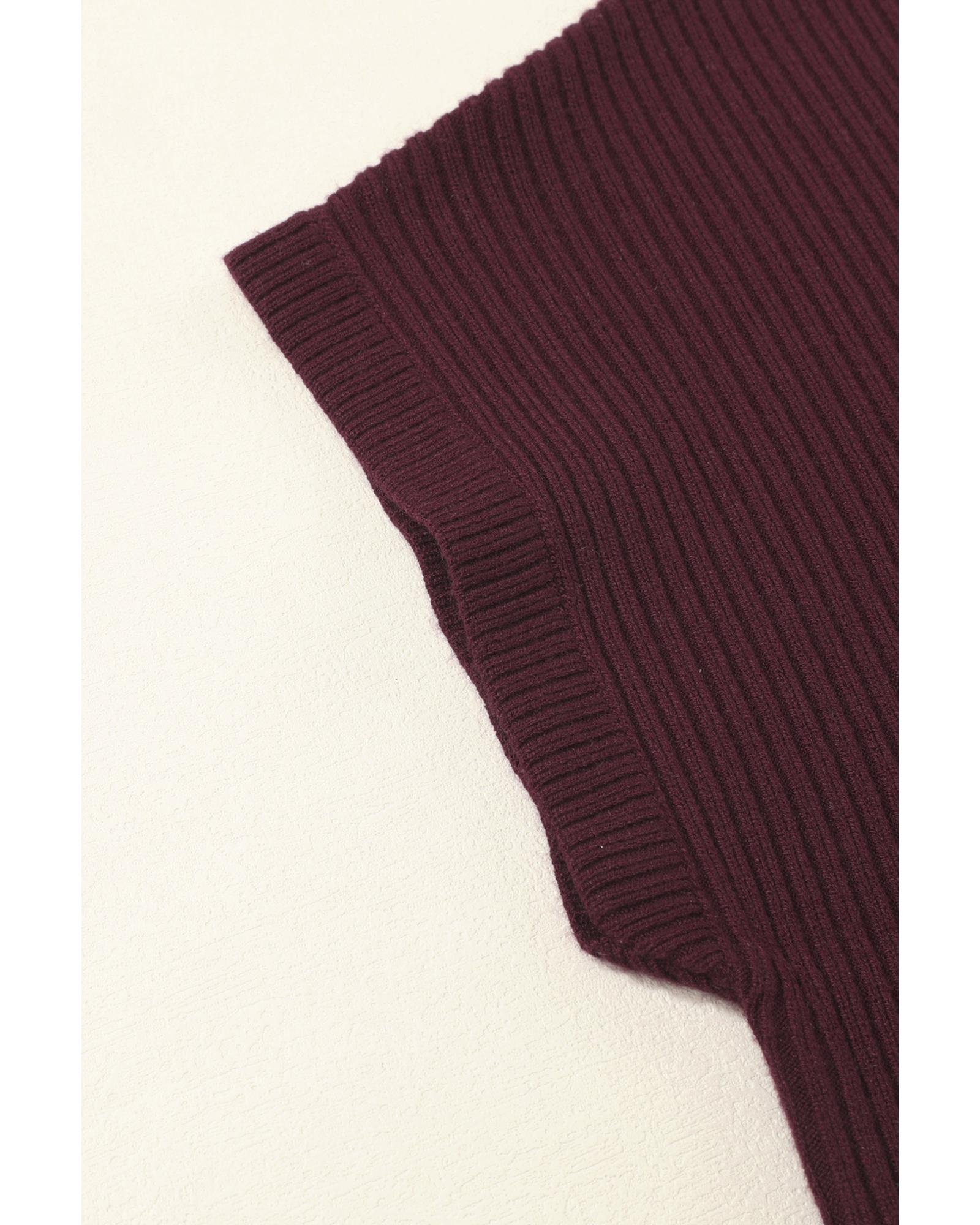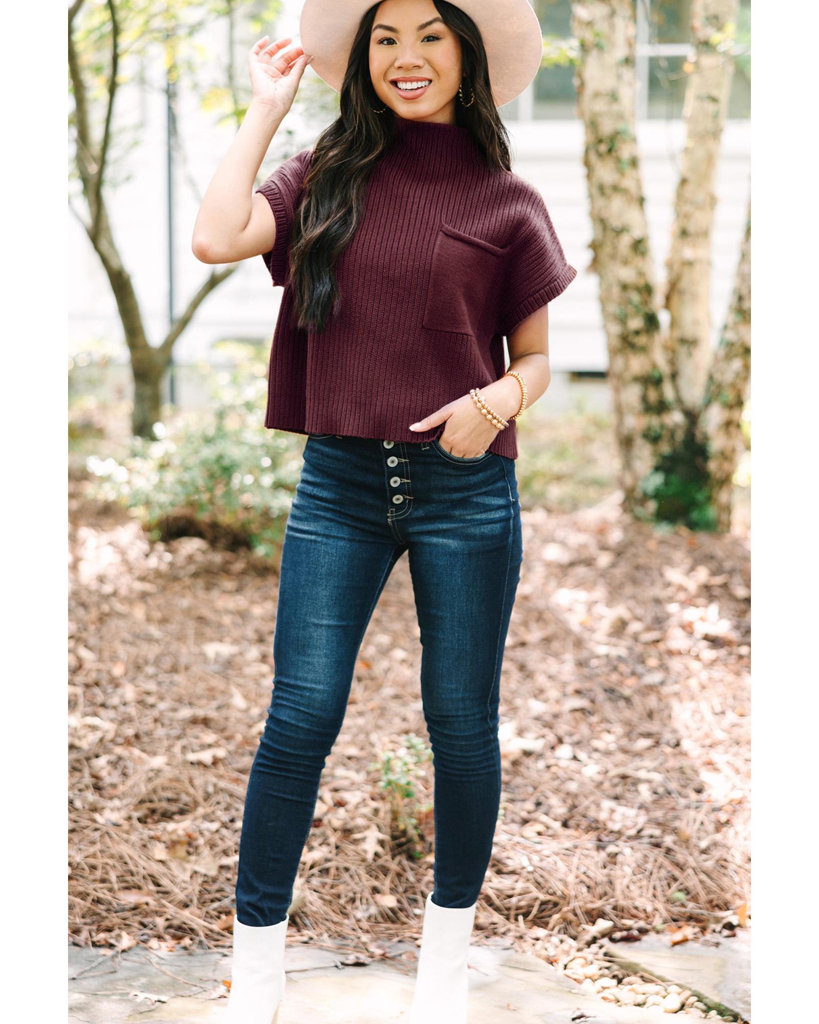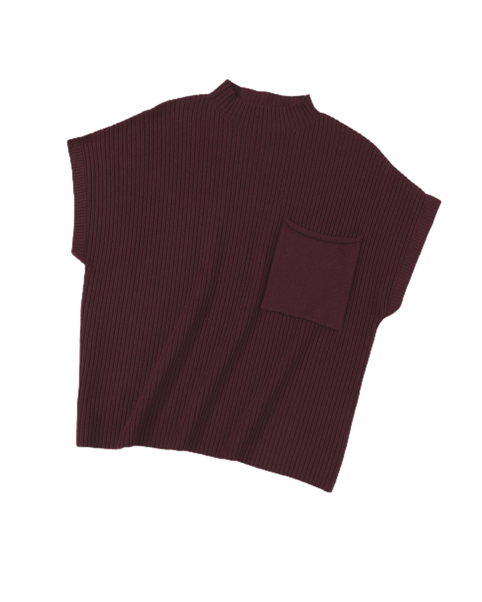 Mineral Red Patch Pocket Ribbed Knit Short Sleeve Sweater – L