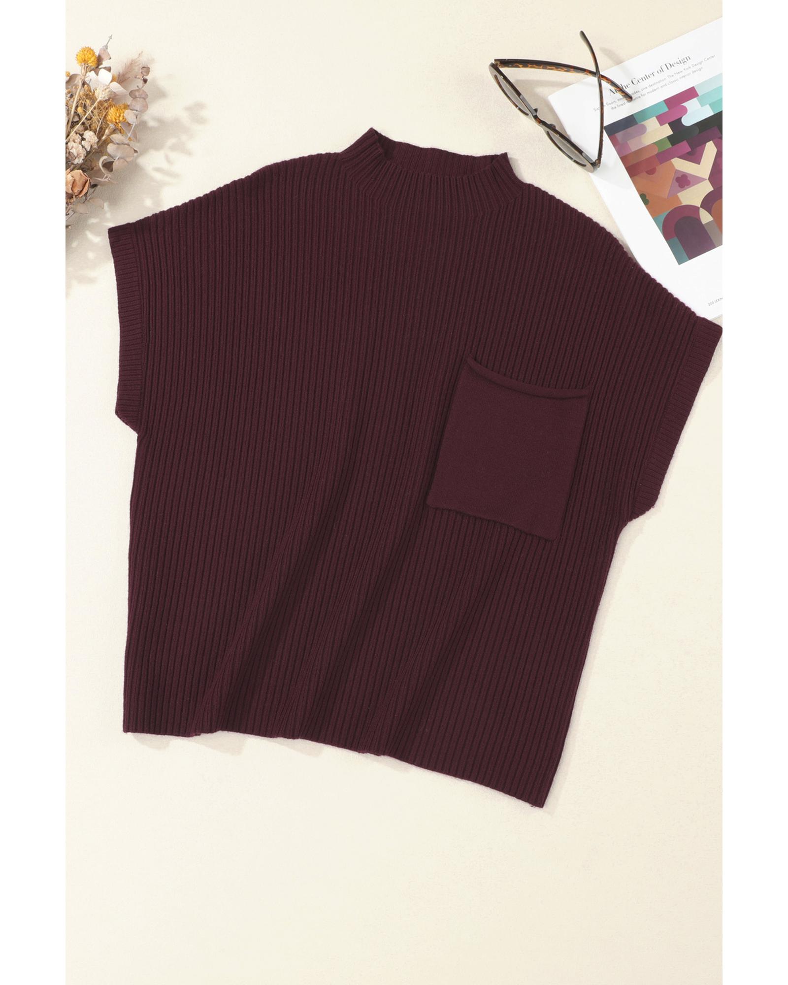 Mineral Red Patch Pocket Ribbed Knit Short Sleeve Sweater – M