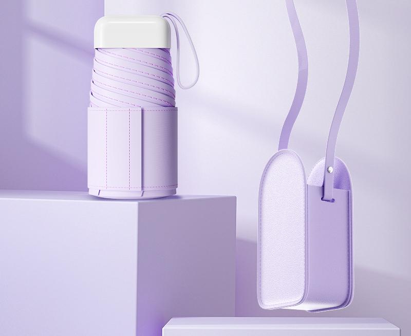 Mini Pocket Umbrella with Matching Crossbody Bag – UV Protection, 6-Rib Windproof Design(purple)