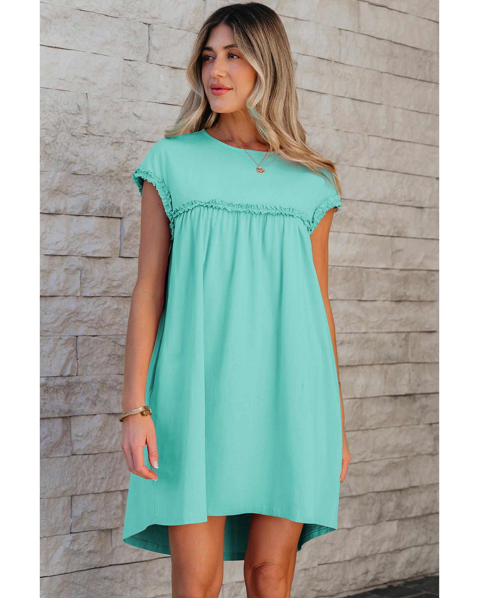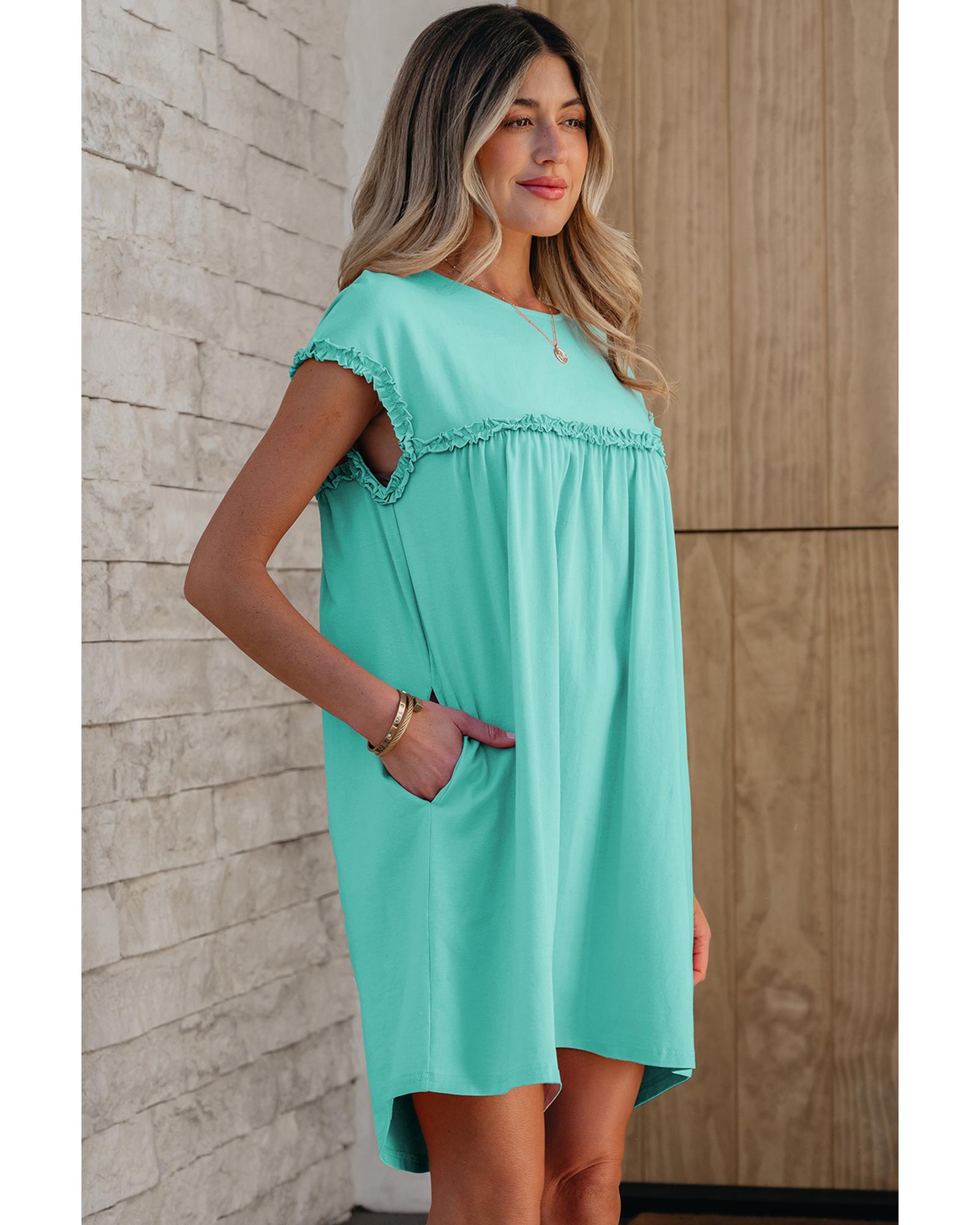 - Mint Green Frilled Trim Crew Neck Loose Fit Mini Dress