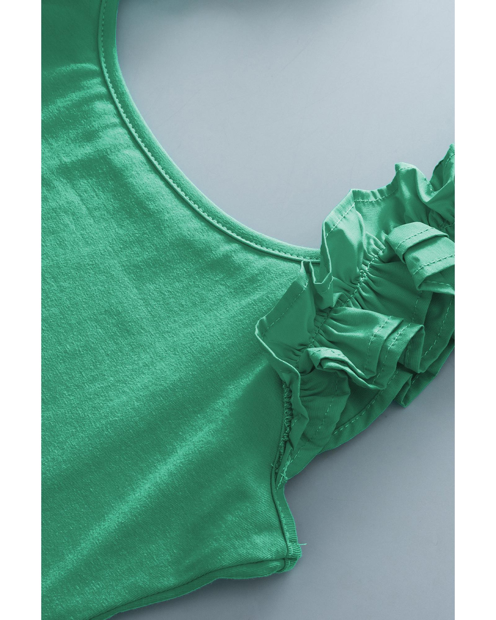 Mint Green Ruffled Wide Straps Slim Tank Top – M