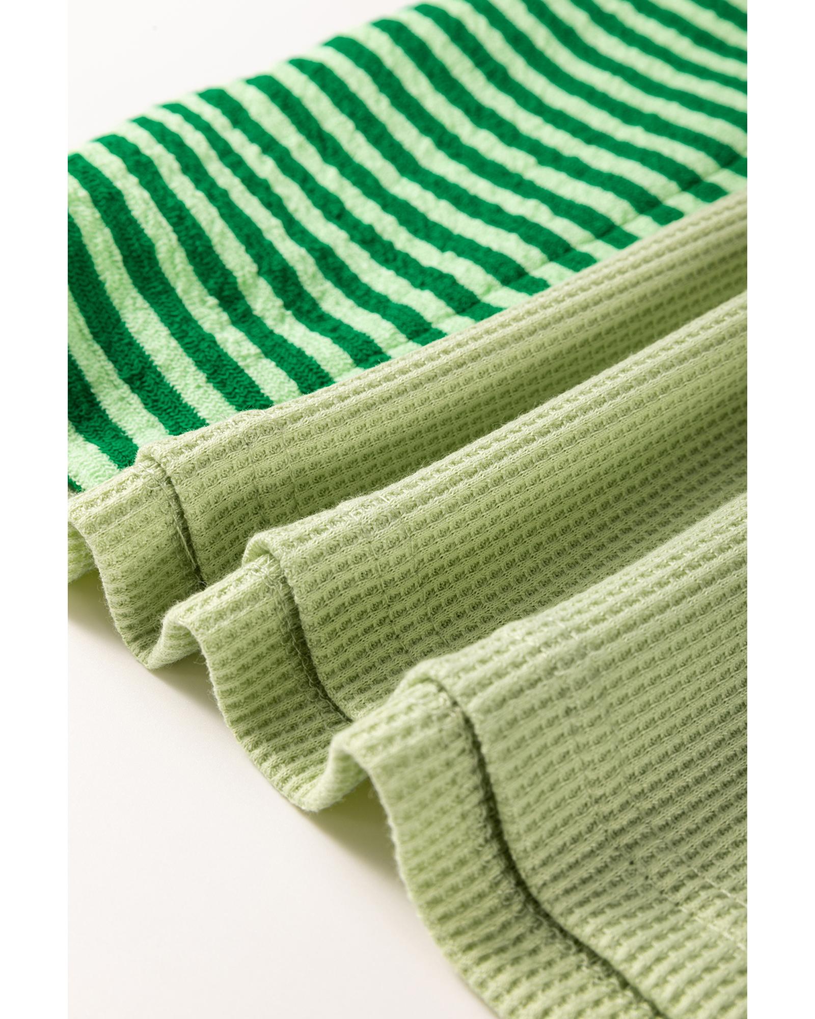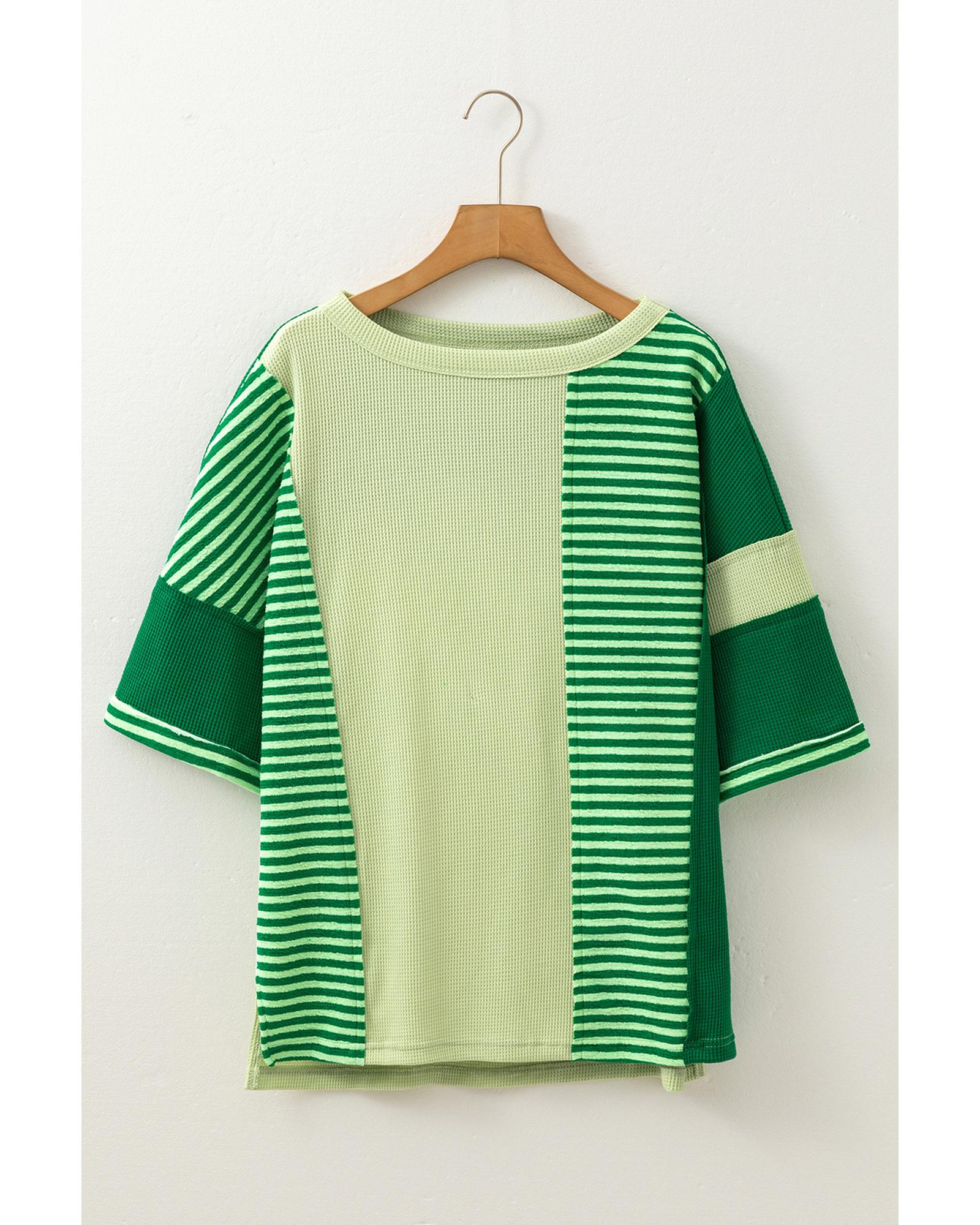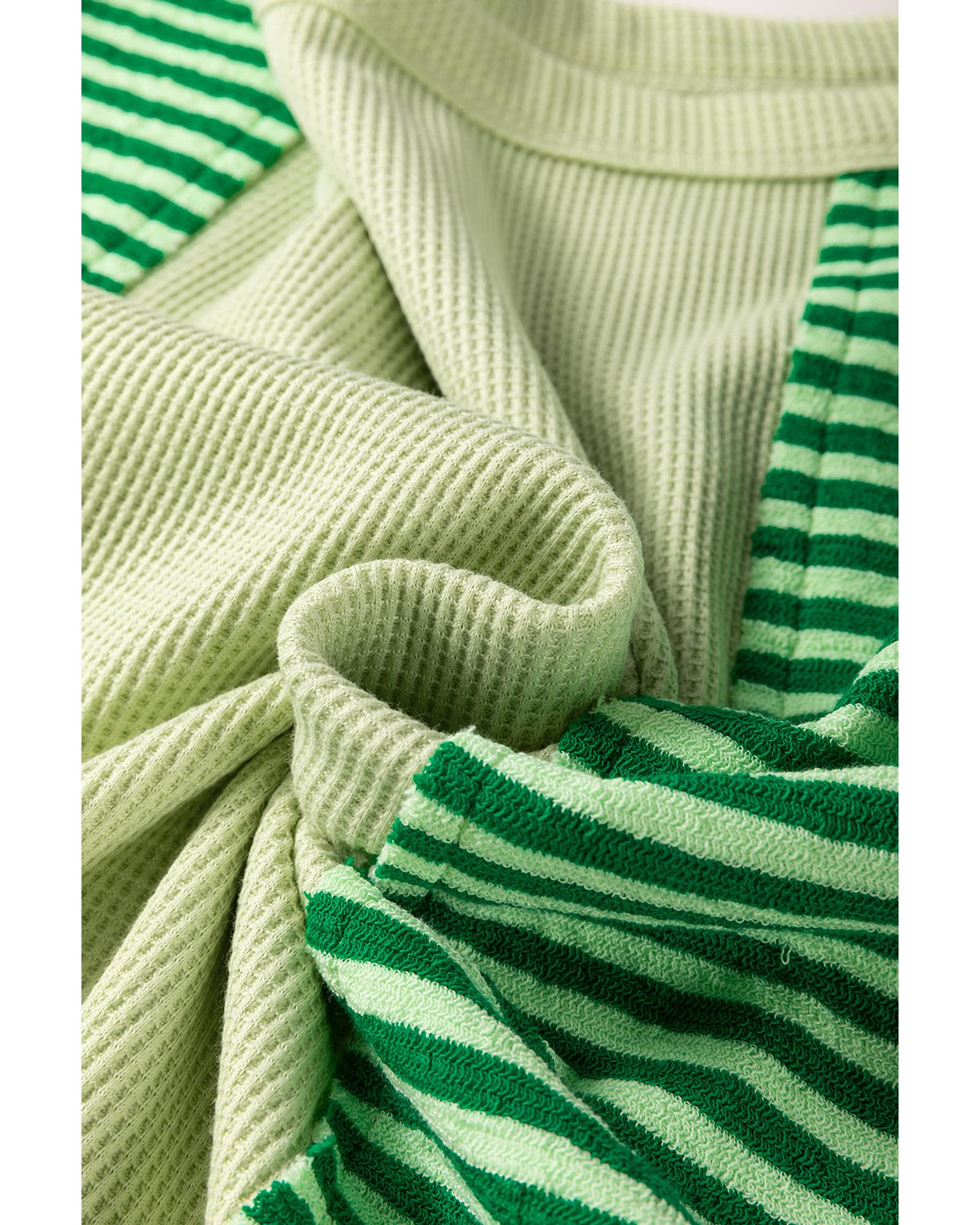 Mint Green Striped Patchwork Textured Colorblock 3/4 Sleeve Knit Top – S
