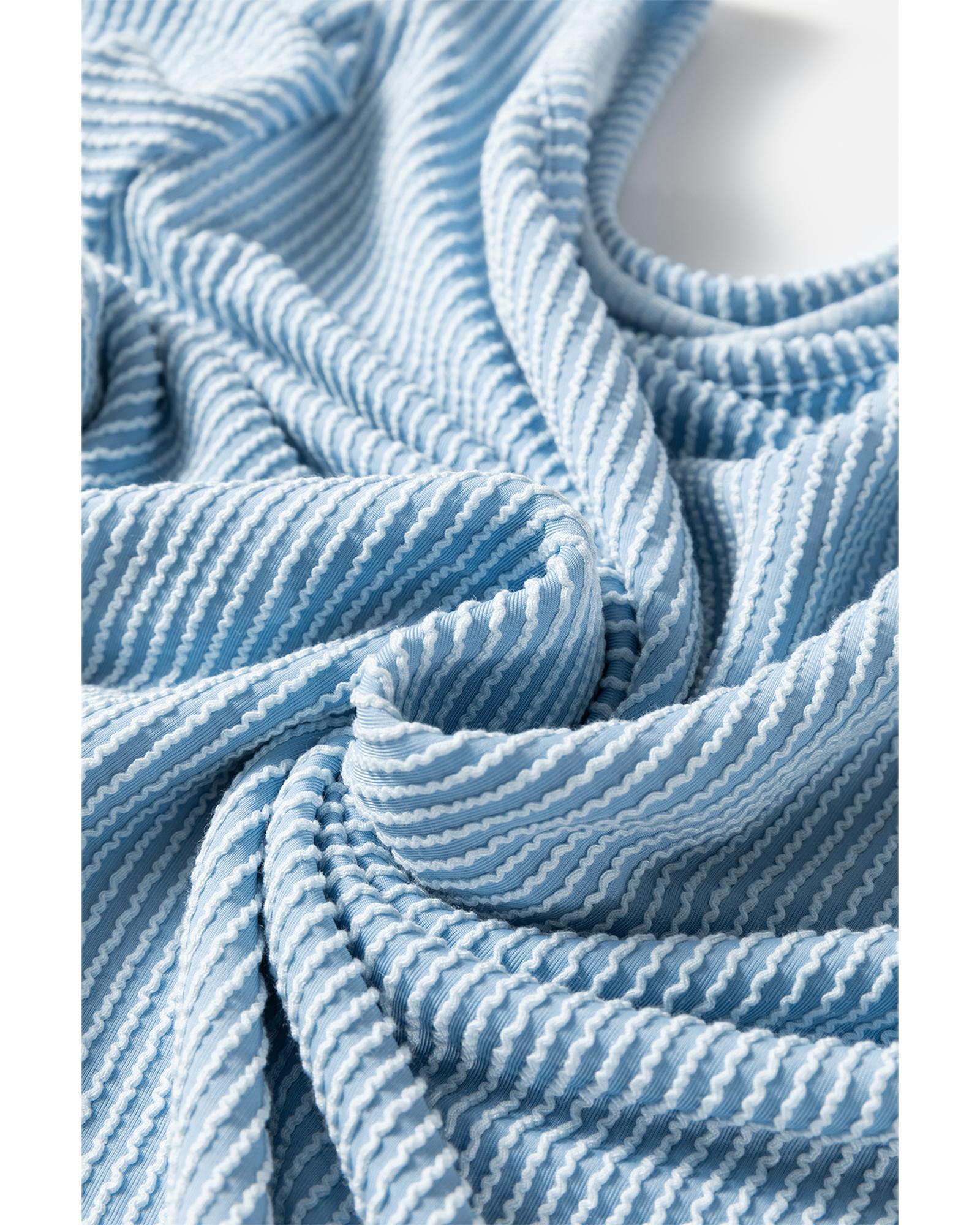 Mist Blue Corded Frilly Puff Sleeve Round Neck Blouse – S