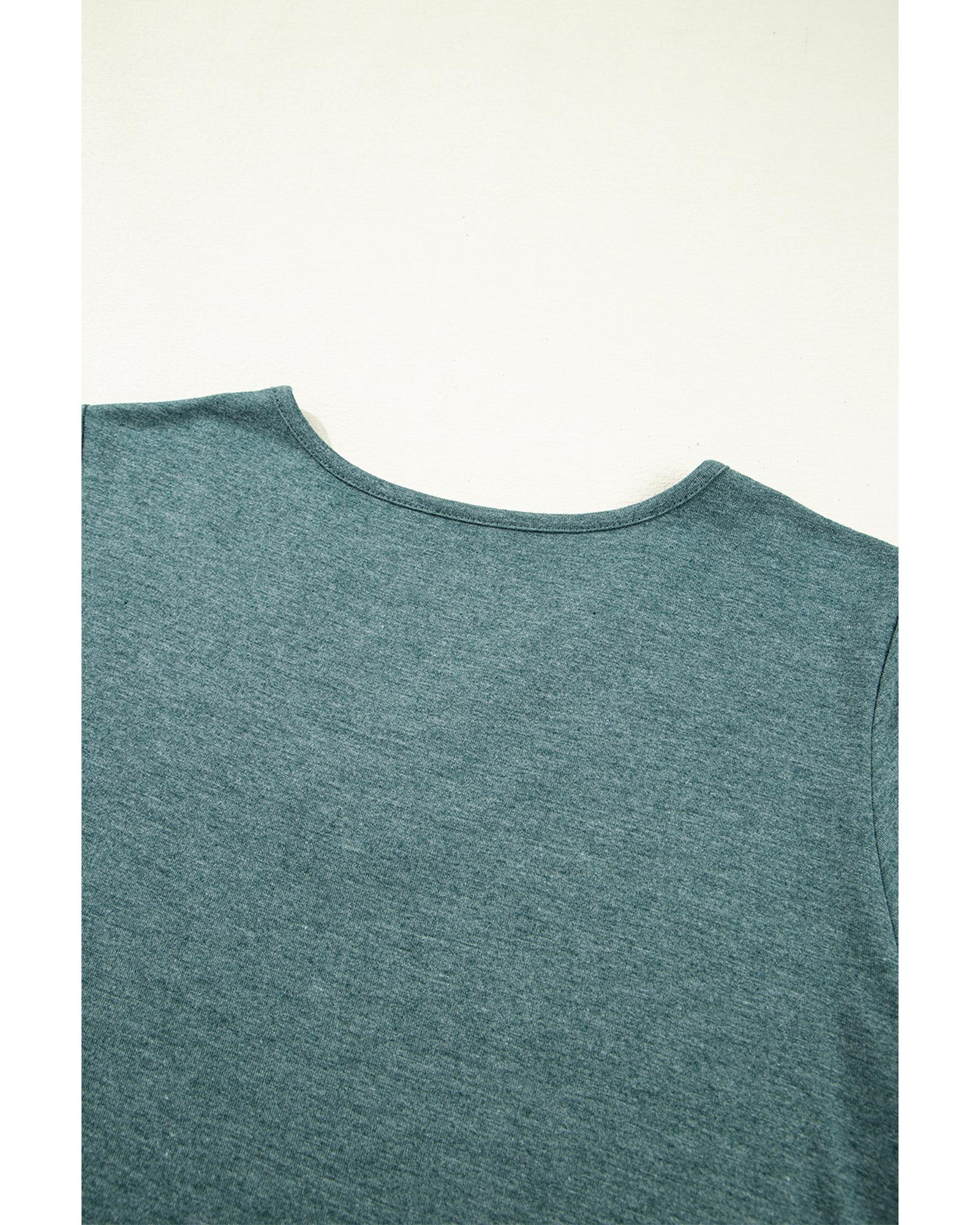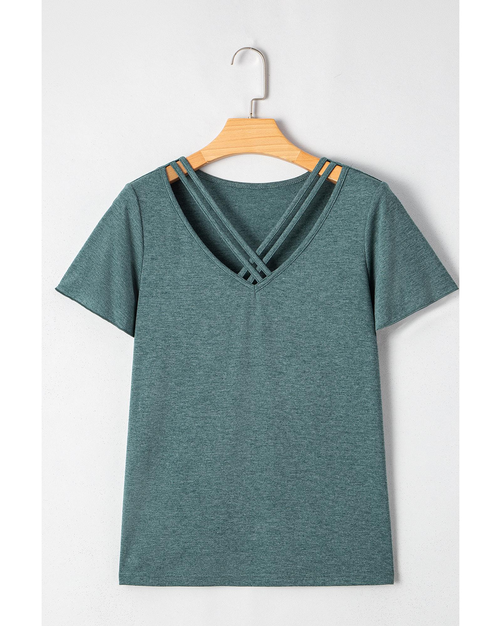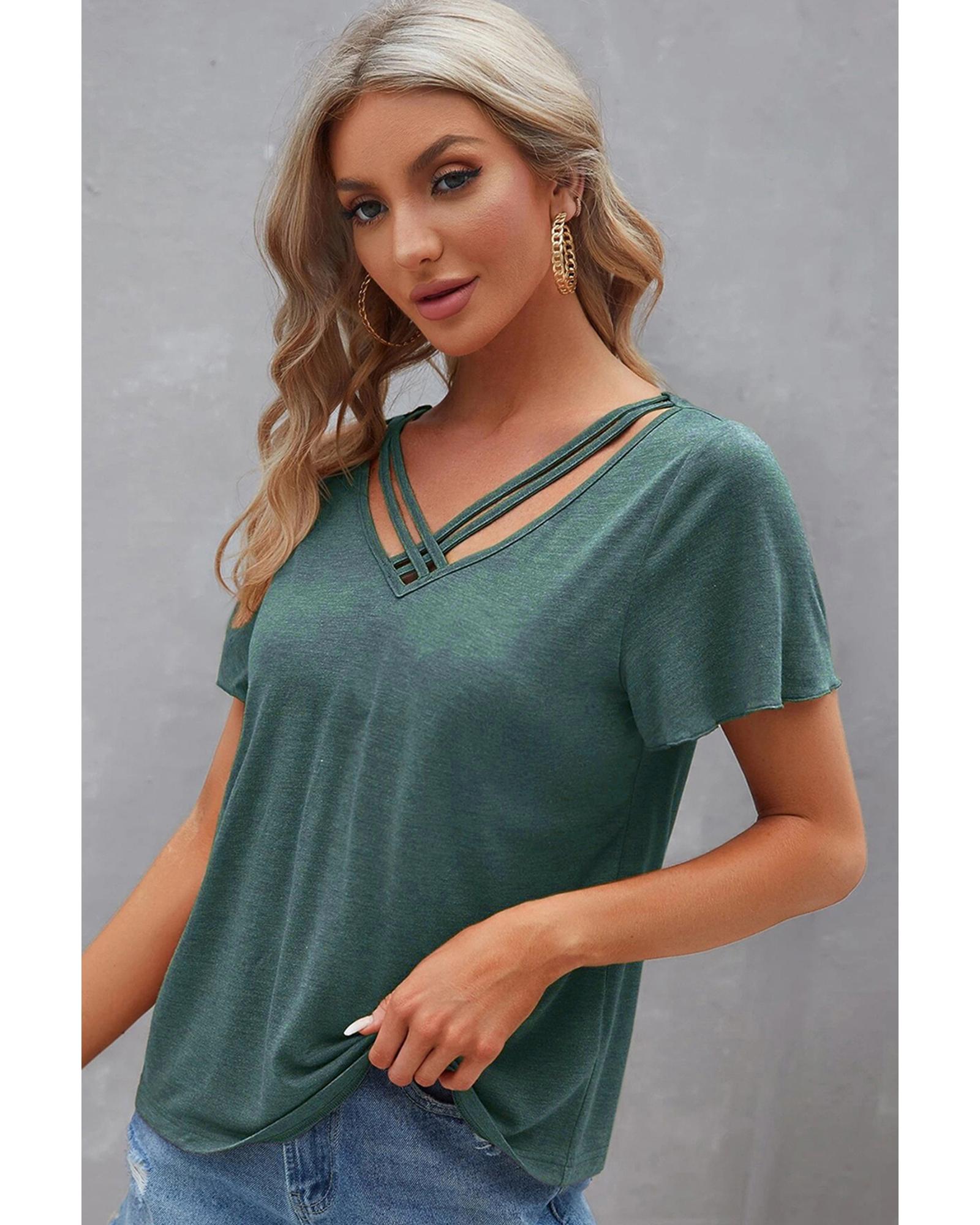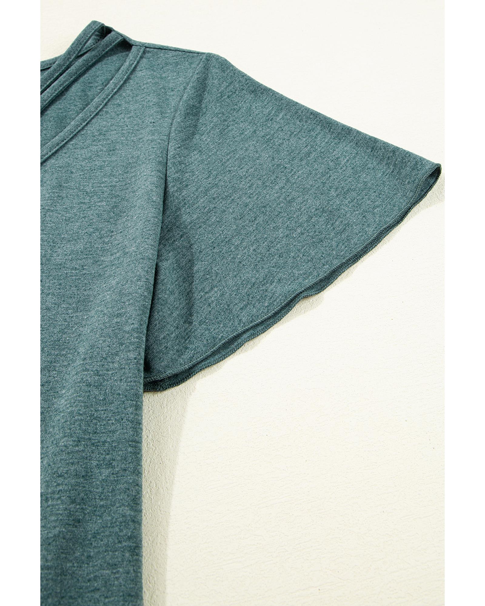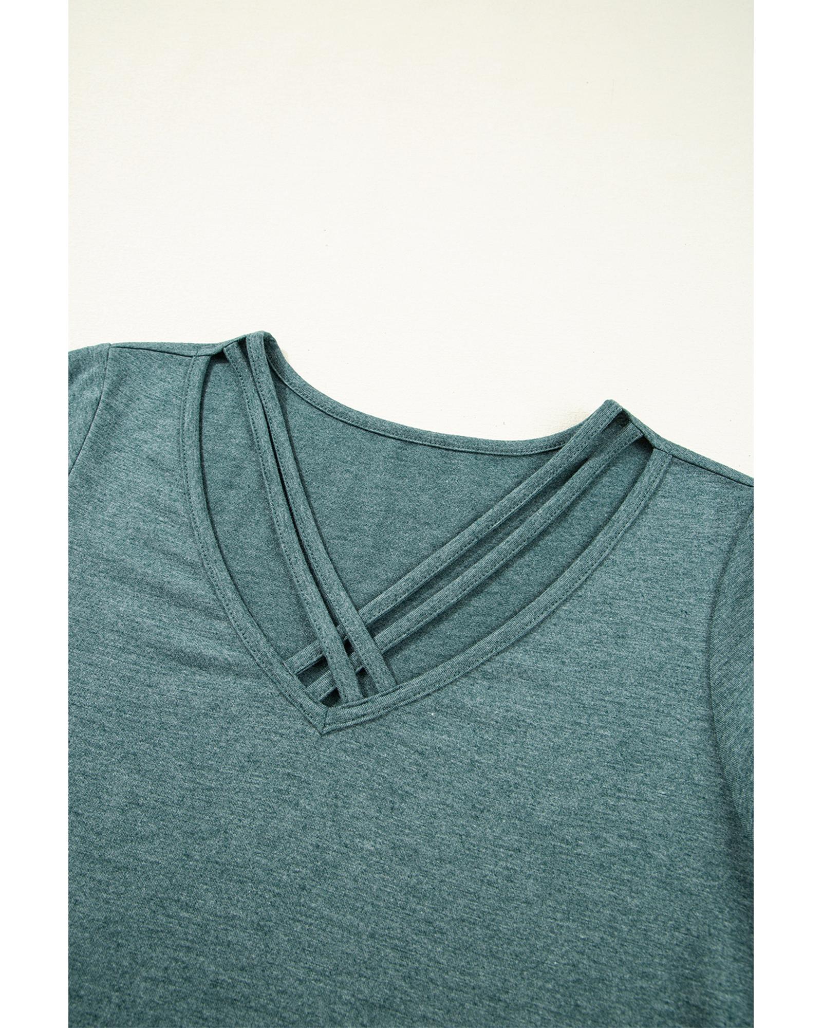 Mist Green Crisscross V Neck Butterfly Sleeve T Shirt – M