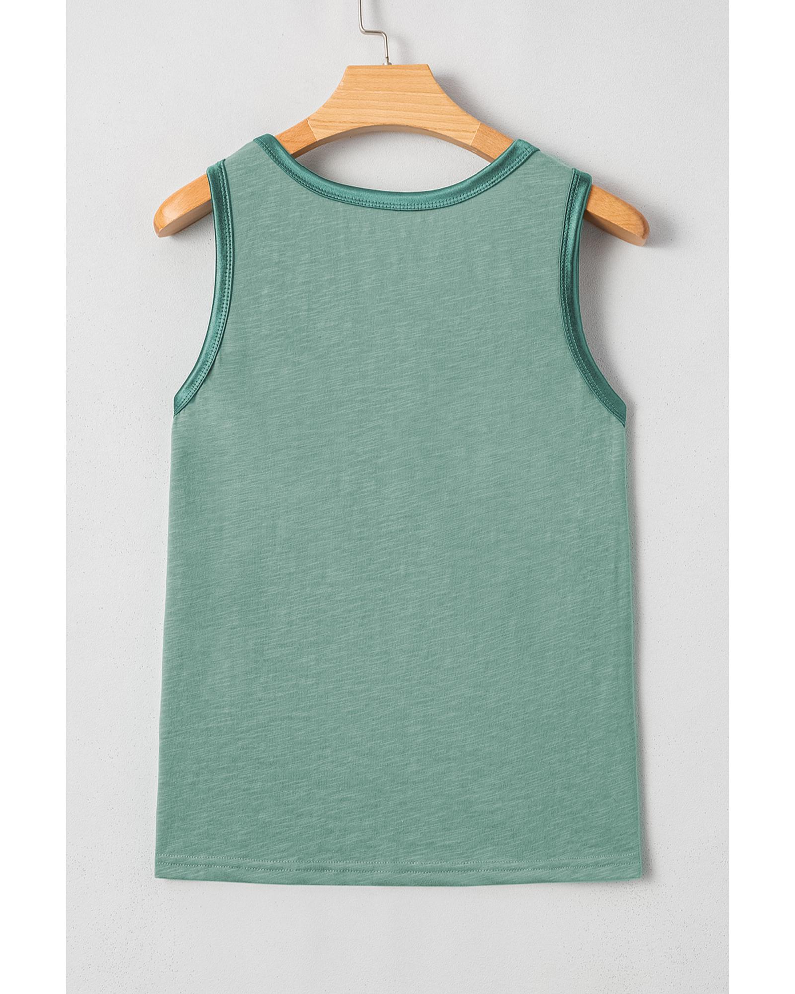 Mist Green Metallic Sheen Edge Scoop Neck Tank Top – S